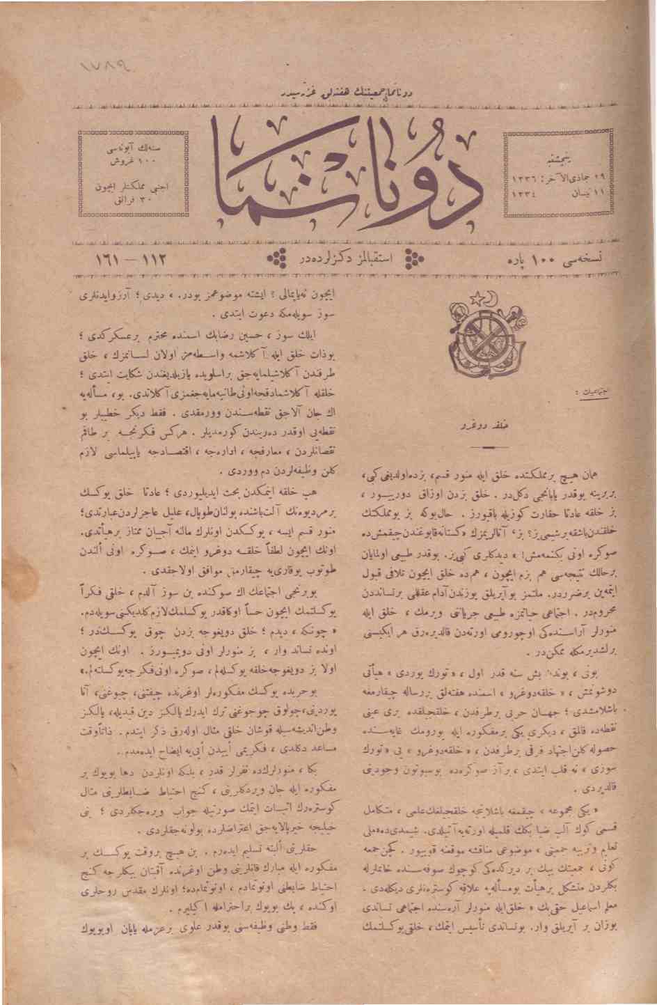 Donanma mecmuası, Nisan 1334 No 161-112