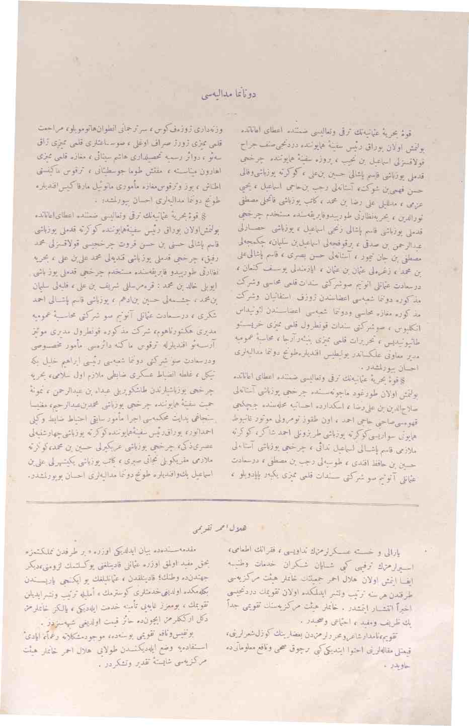 The name of the periodical was published under the following titles in different periods: Donanma: Donanma Cemiyetinin haftalık gazetesi; Donanma: istikbal denizlerdedir; Donanma: şimdilik ayda bir defa neşrolunur; Donanma: ayda bir defa neşr olunur, musavver, ahlaki, edebi, tarihi, fenni mecmuadır.