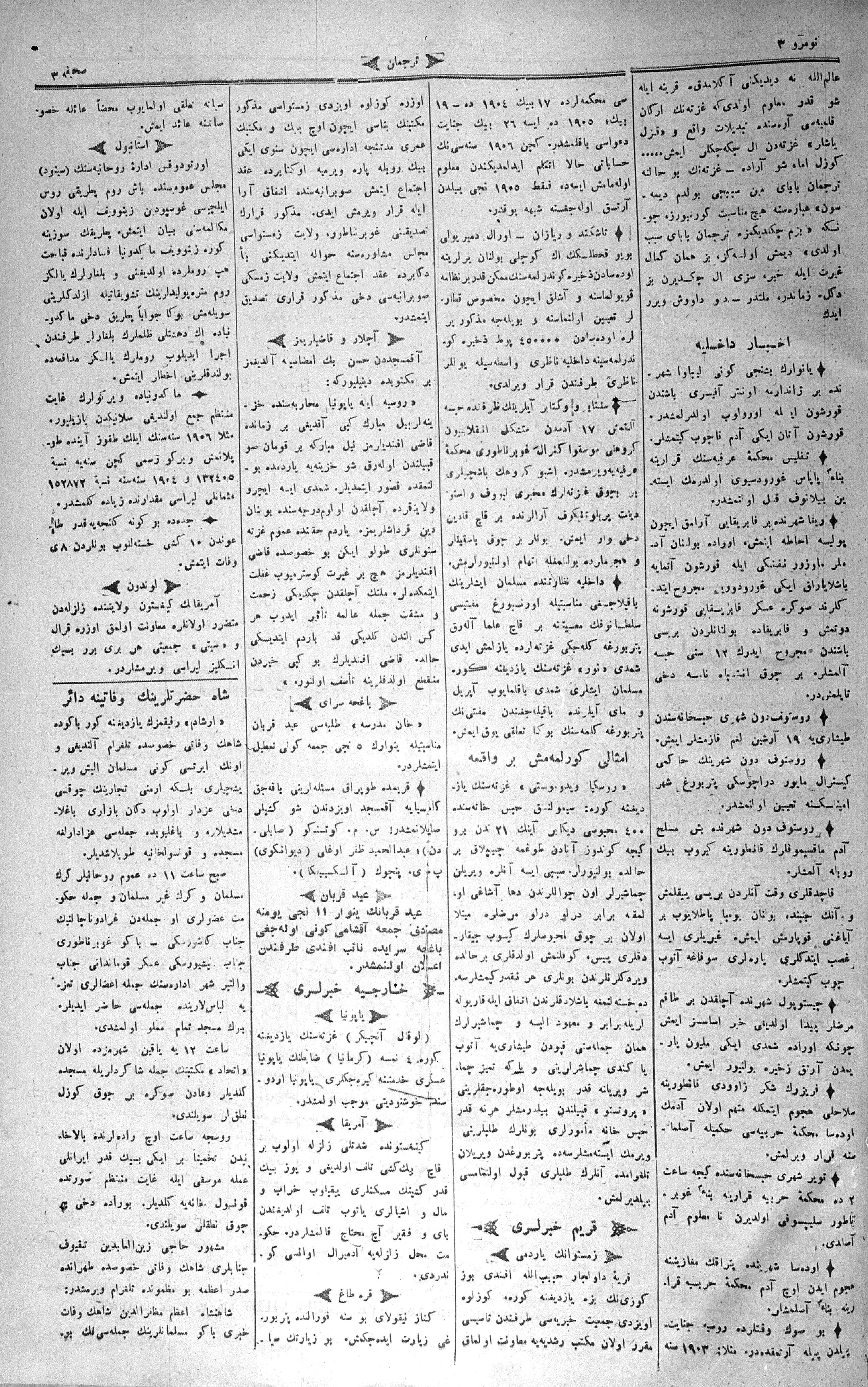 Tercüman, 08 January 1907 Year 25 No 3