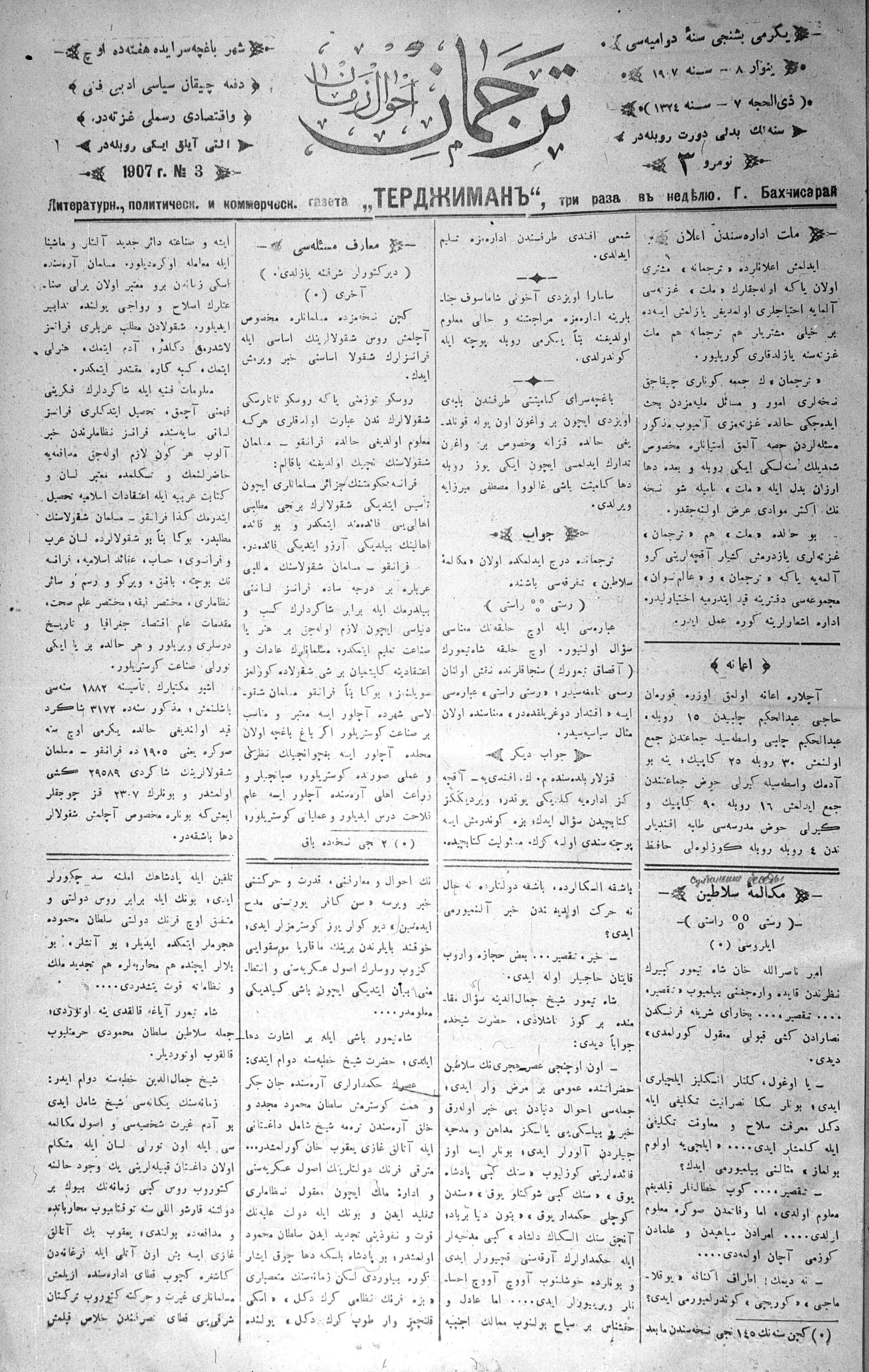 Turkish-Russian newspaper published in Crimea by İsmail Gaspıralı.