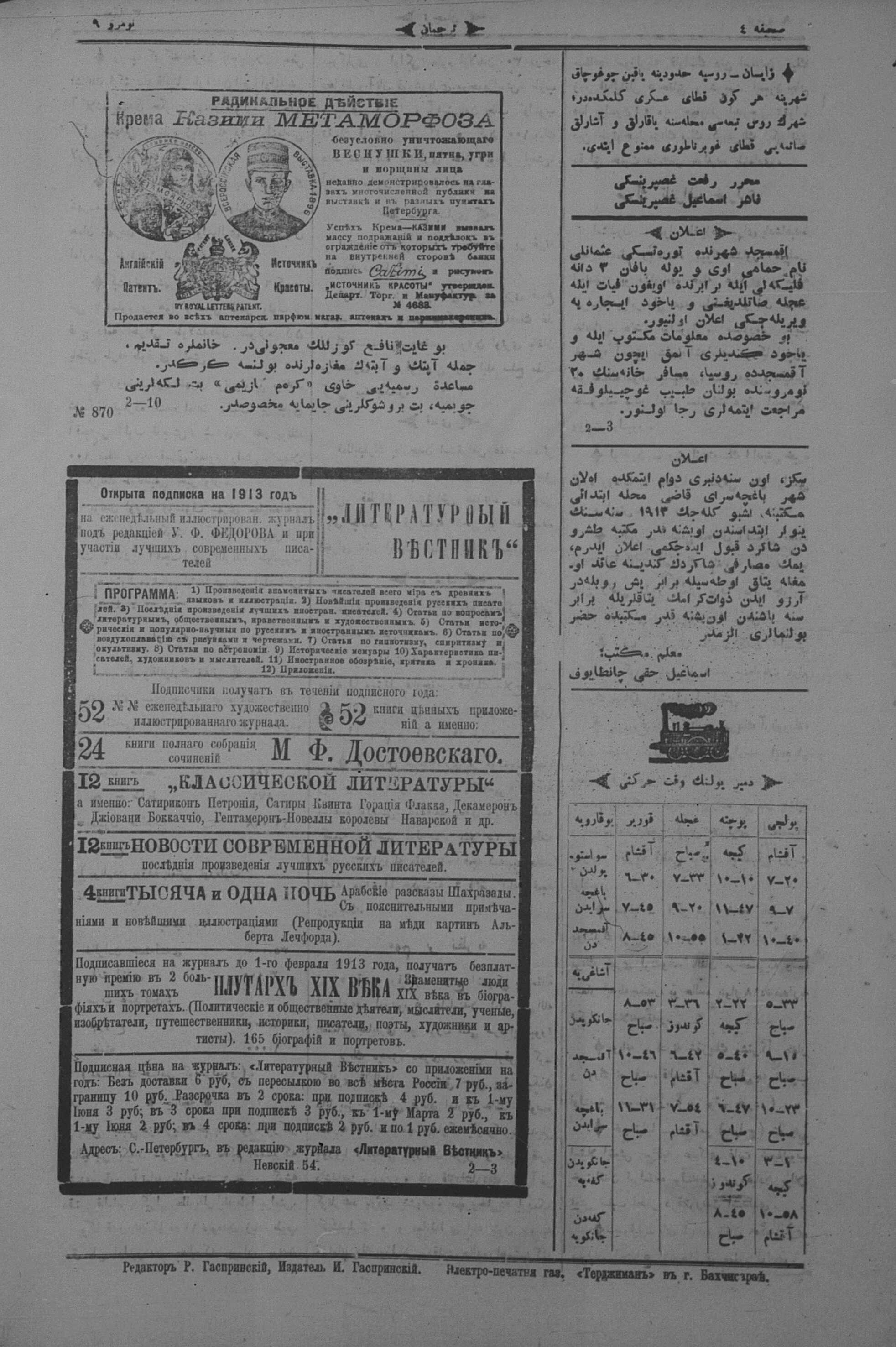 Turkish-Russian newspaper published in Crimea by İsmail Gaspıralı.