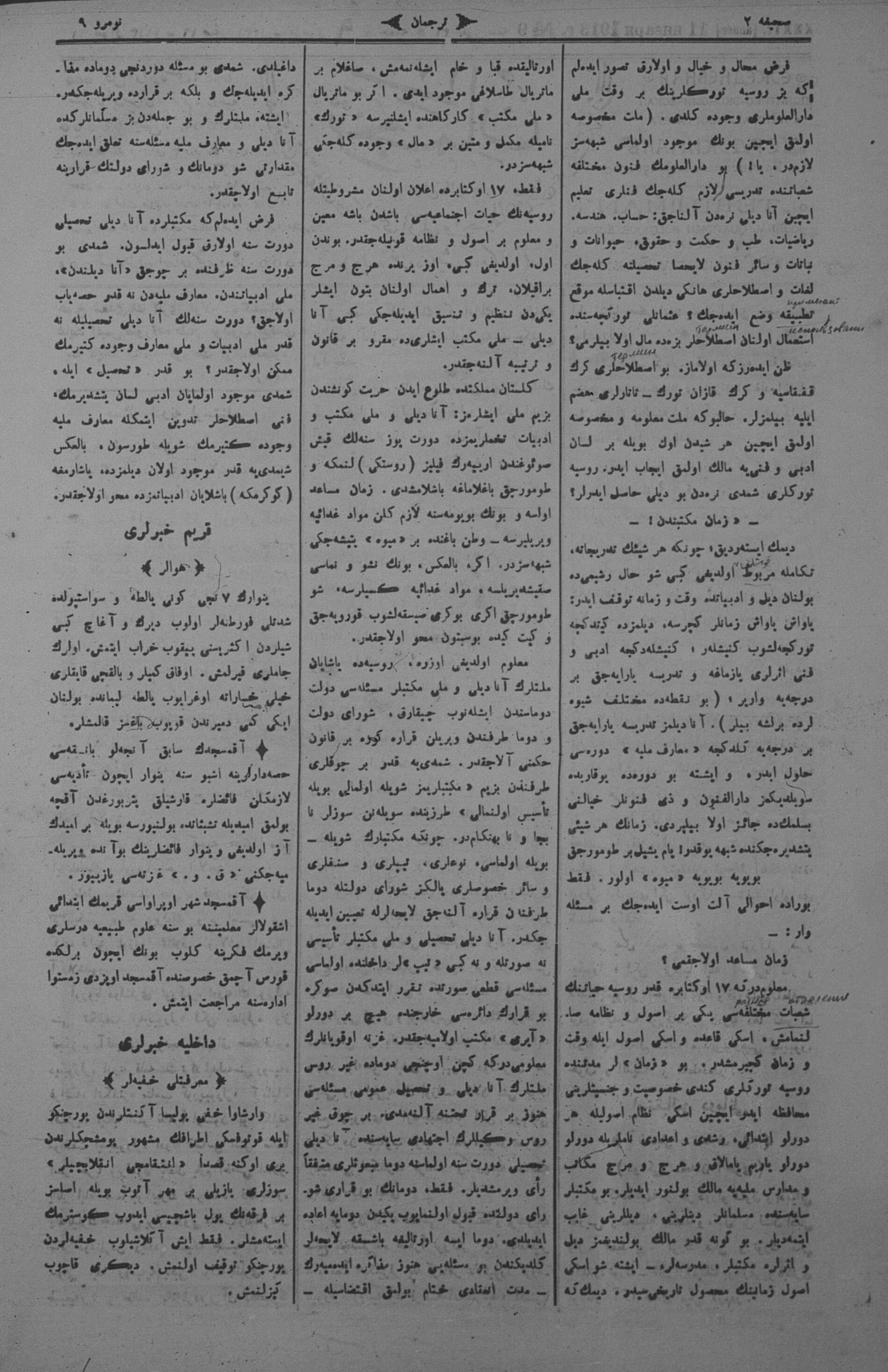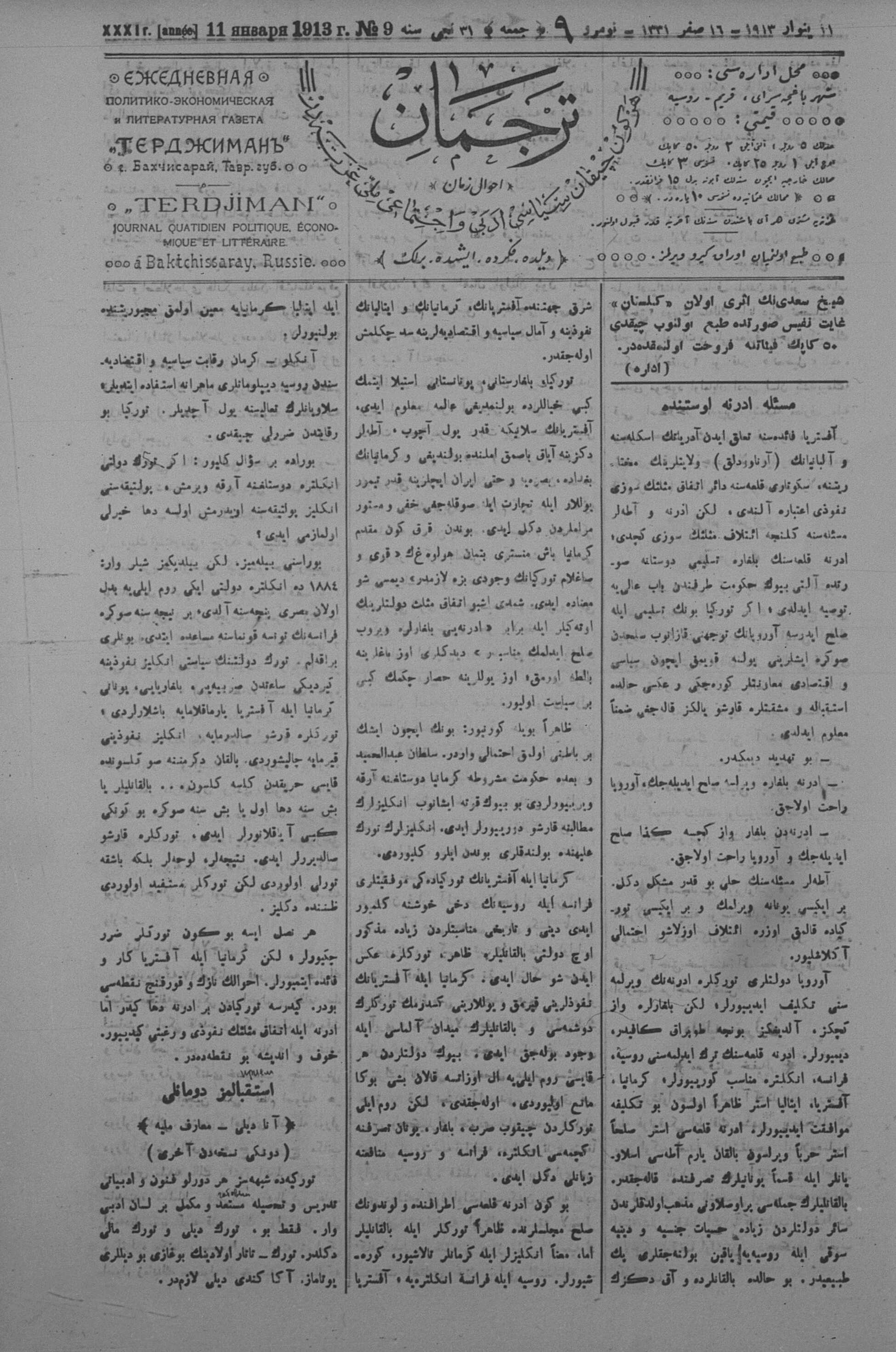 Tercüman, 11 January 1913 Year 31 No 9
