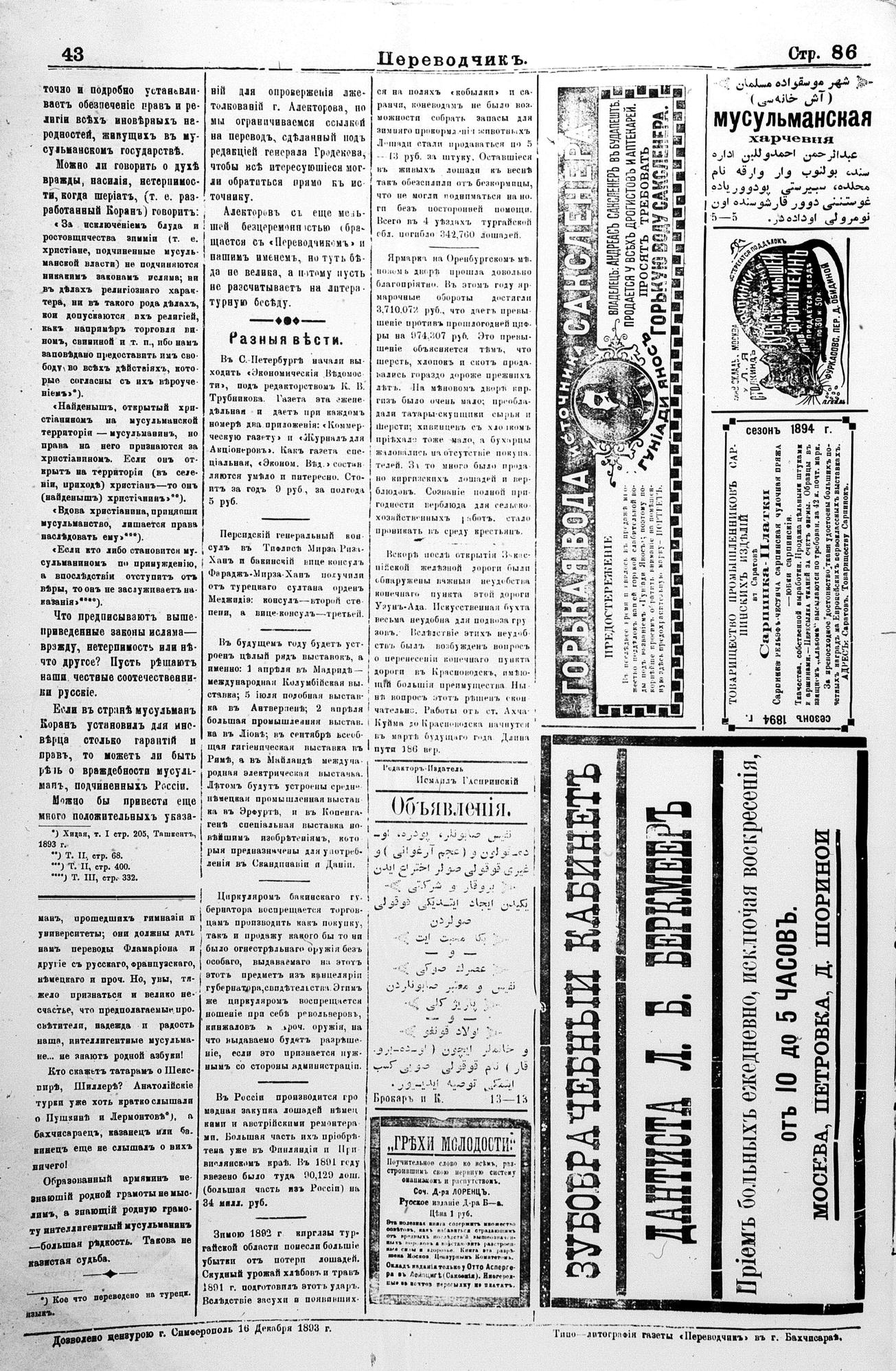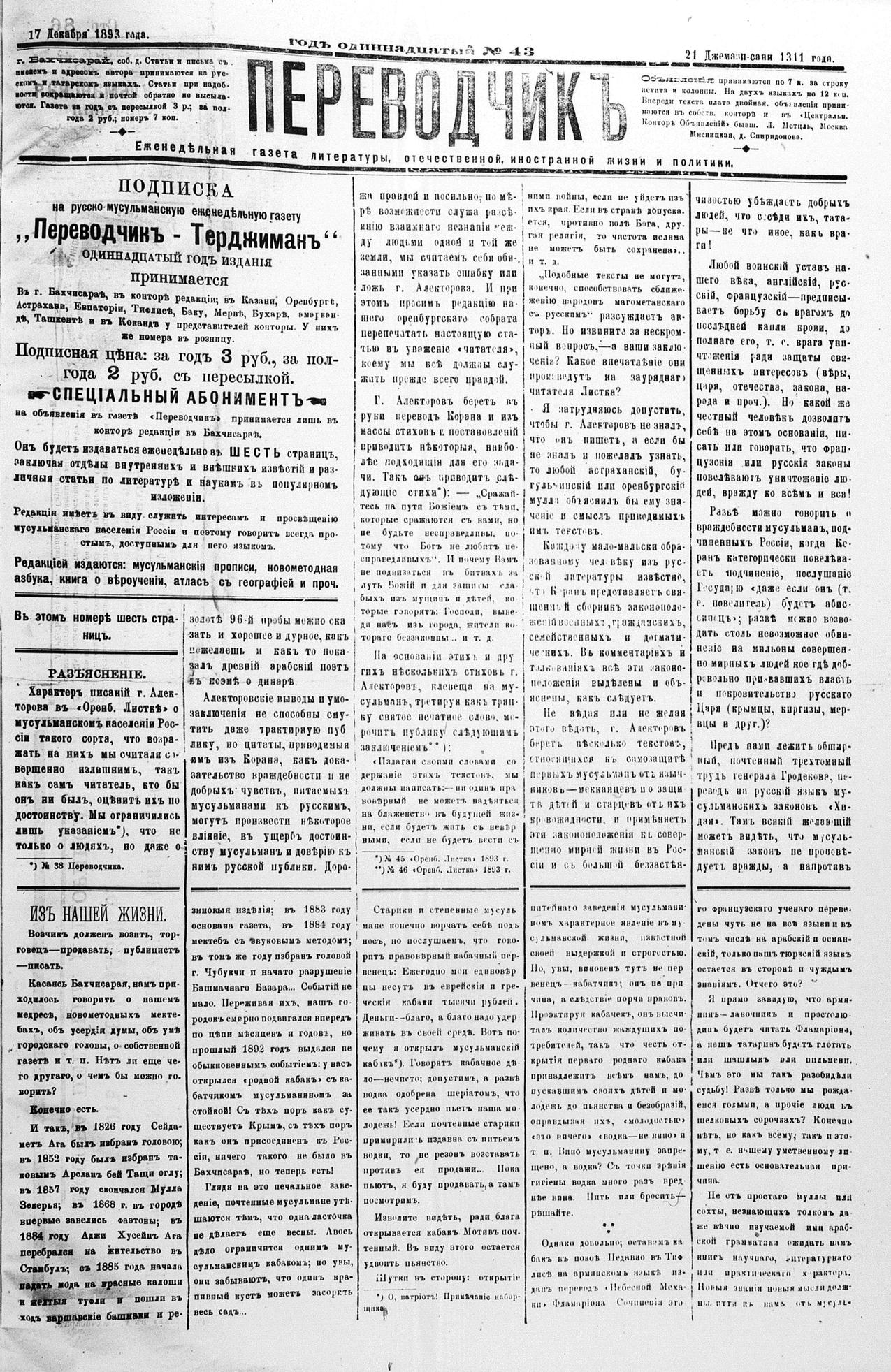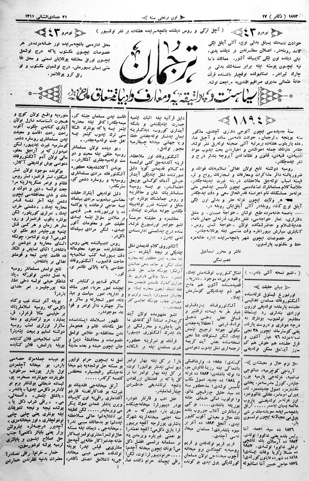 Tercüman, 17 December 1893 Year 11 No 43