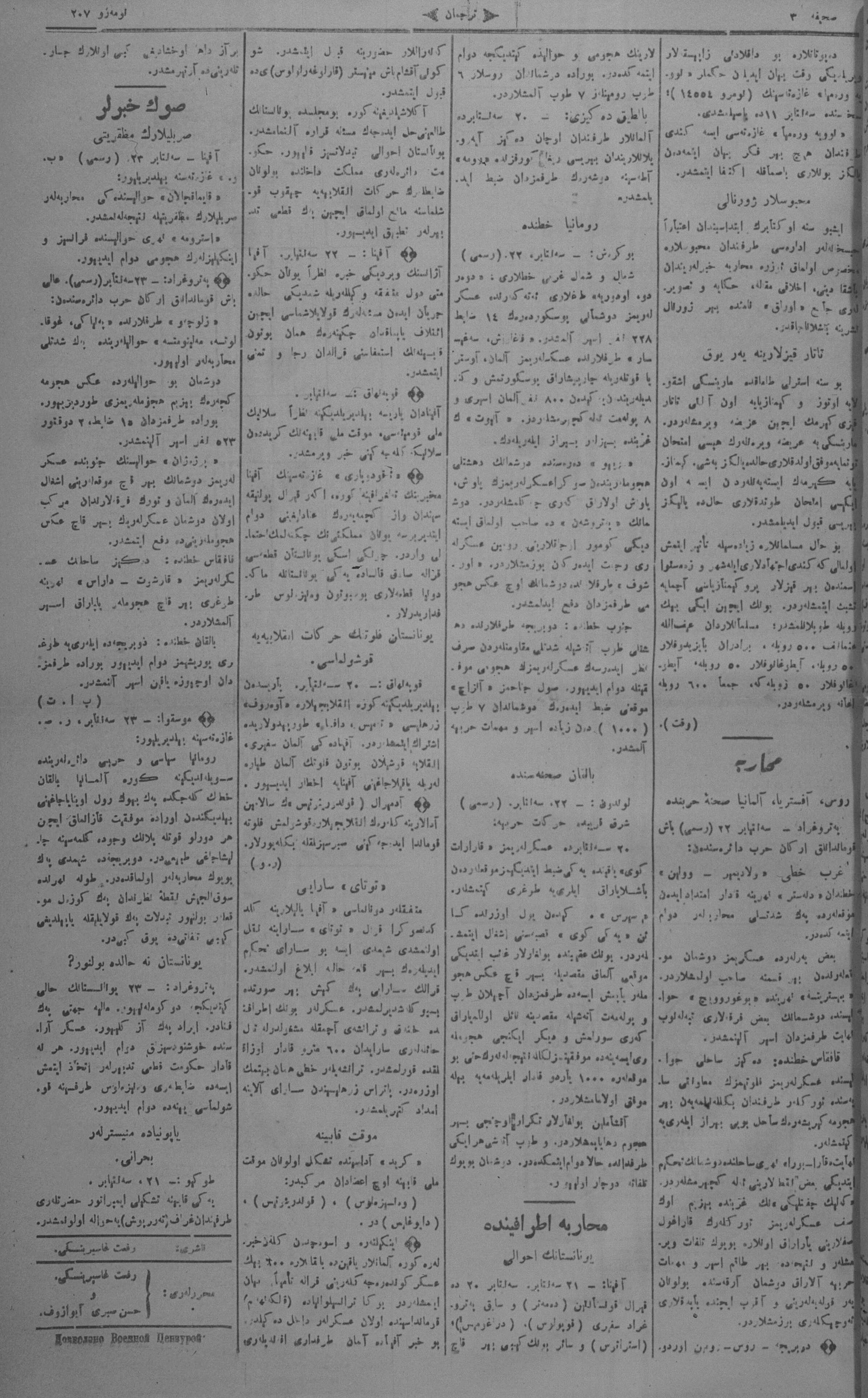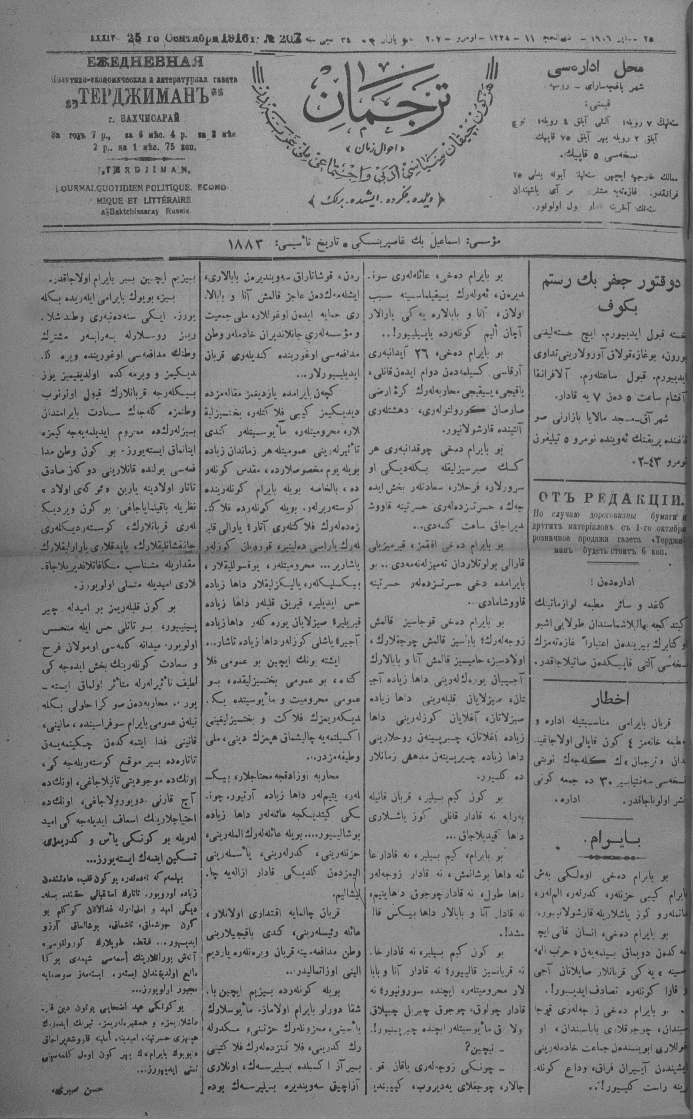 Tercüman, 25 September 1916 Year 34 No 207