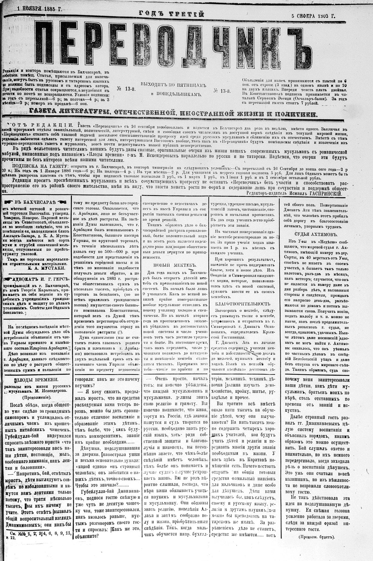 Turkish-Russian newspaper published in Crimea by Gaspirali Ismail Bey.