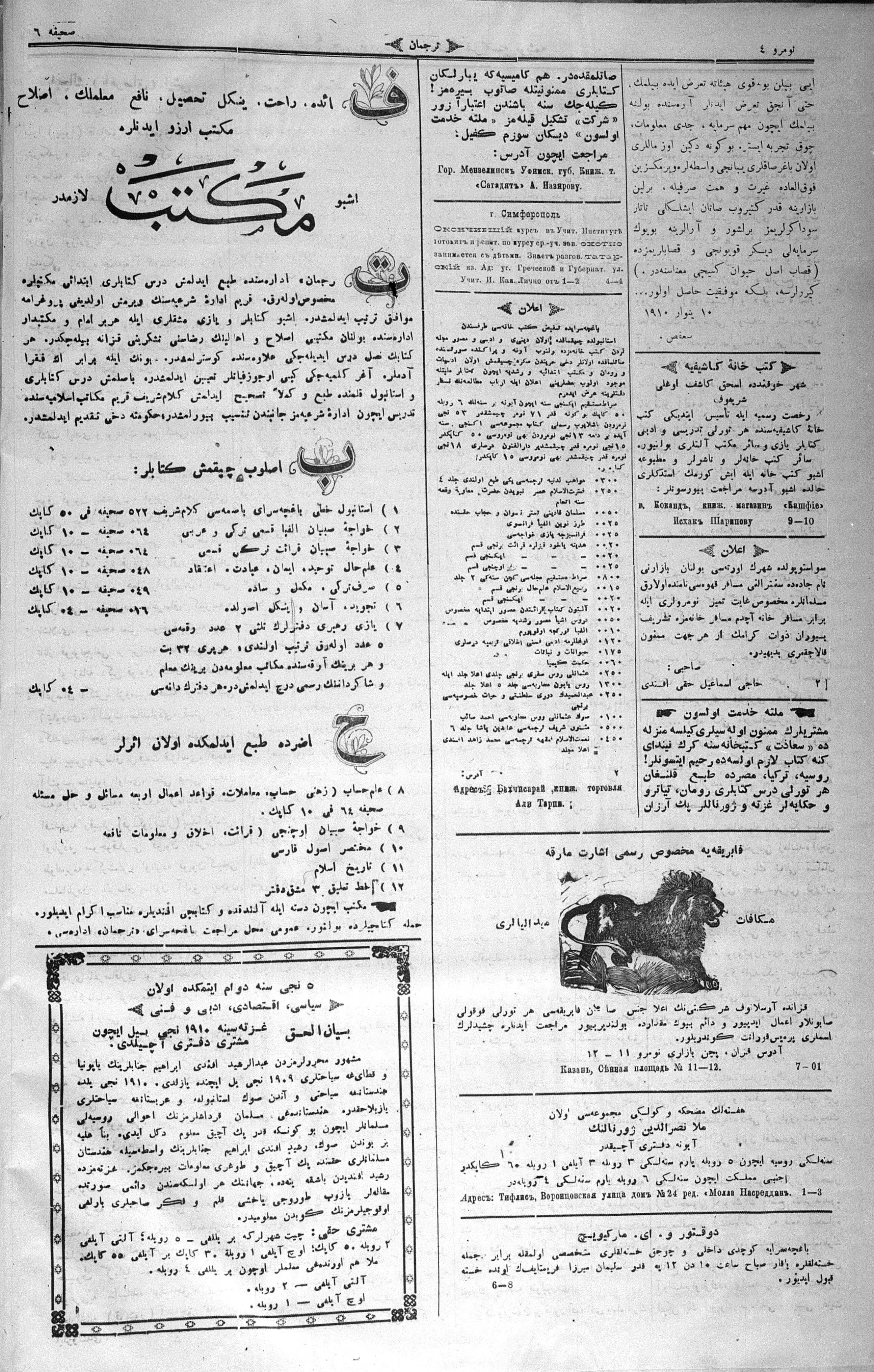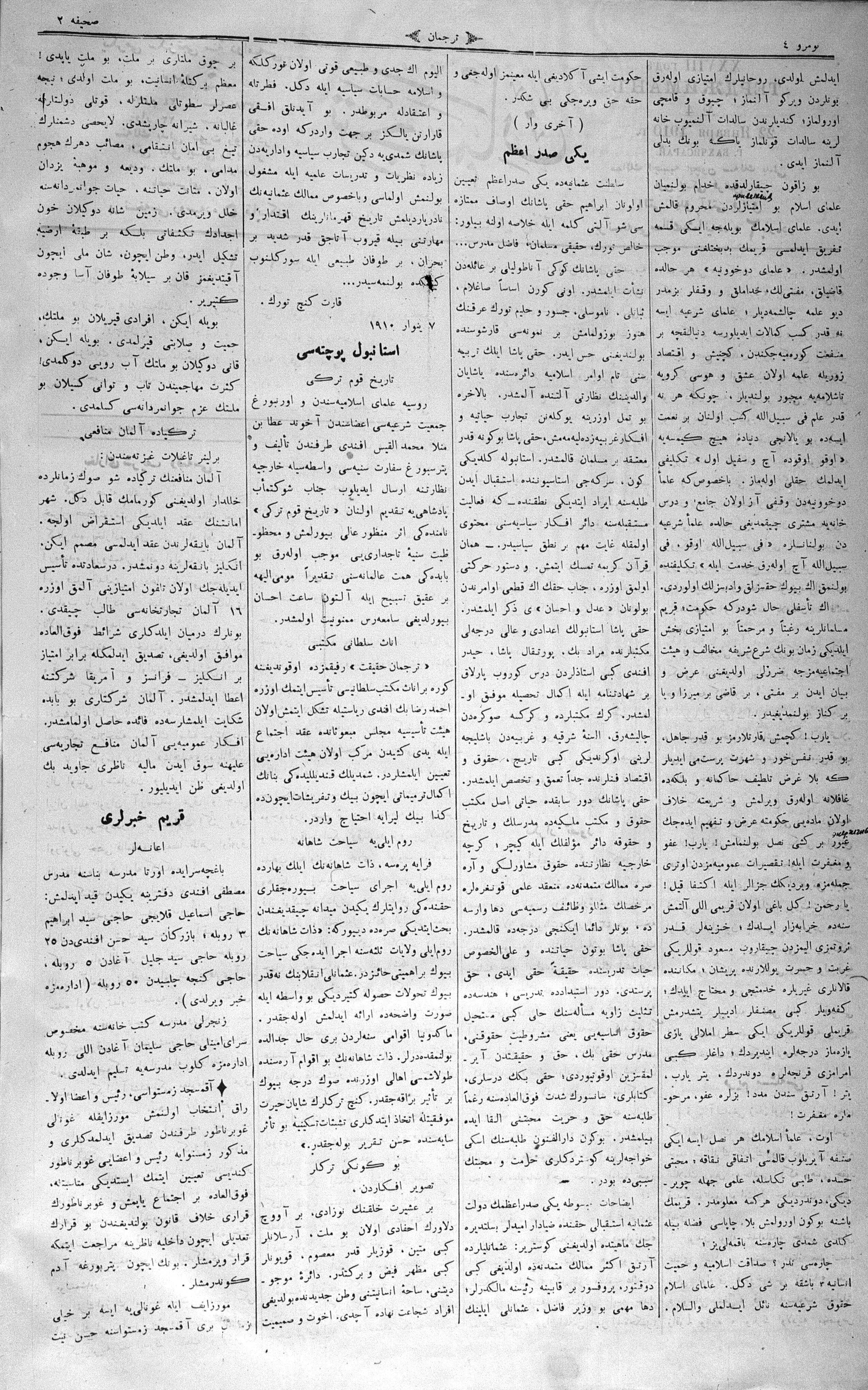 Tercüman, 22 January 1910 Year 28 No 4