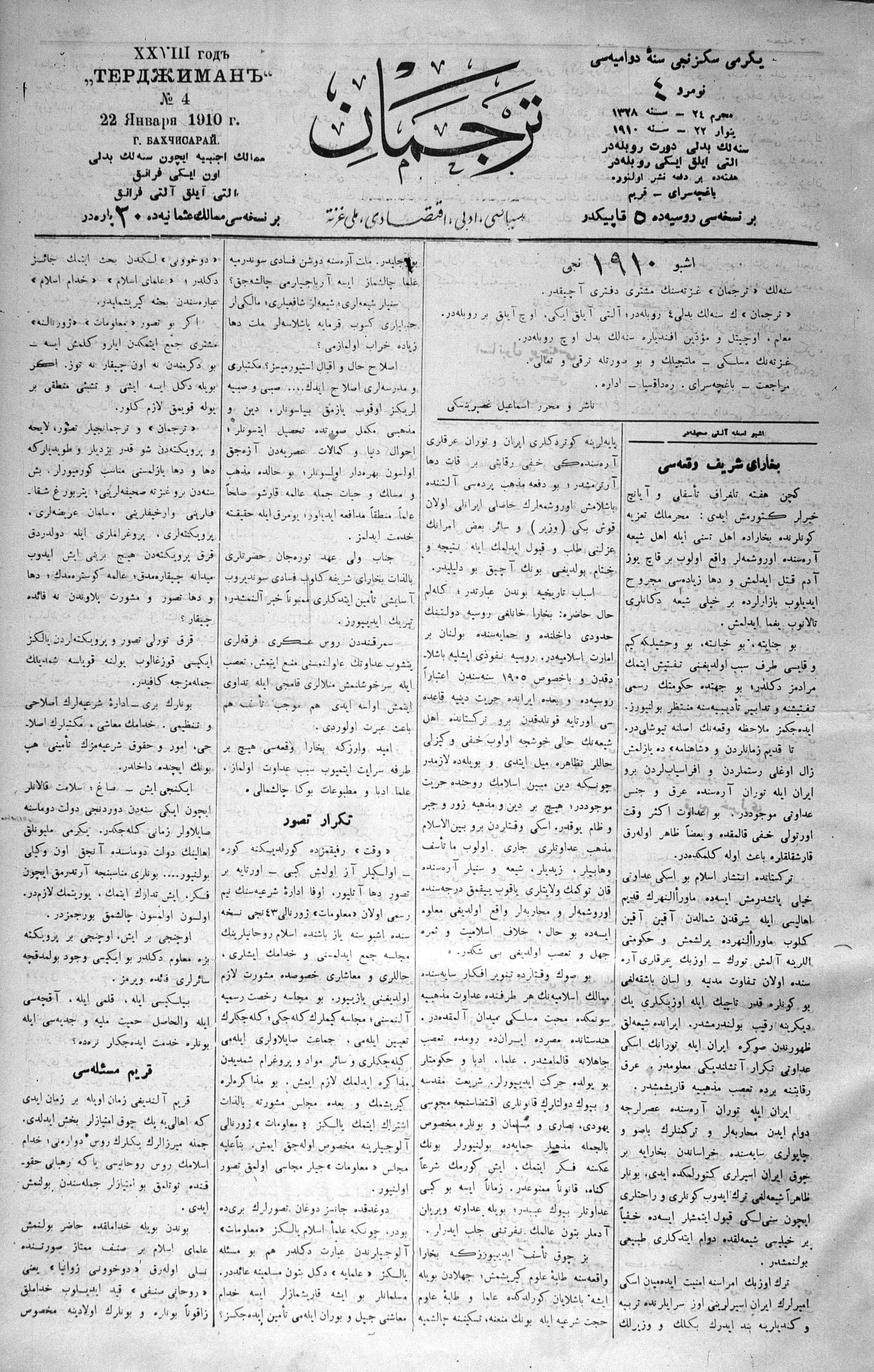 Turkish-Russian newspaper published in Crimea by İsmail Gaspıralı.