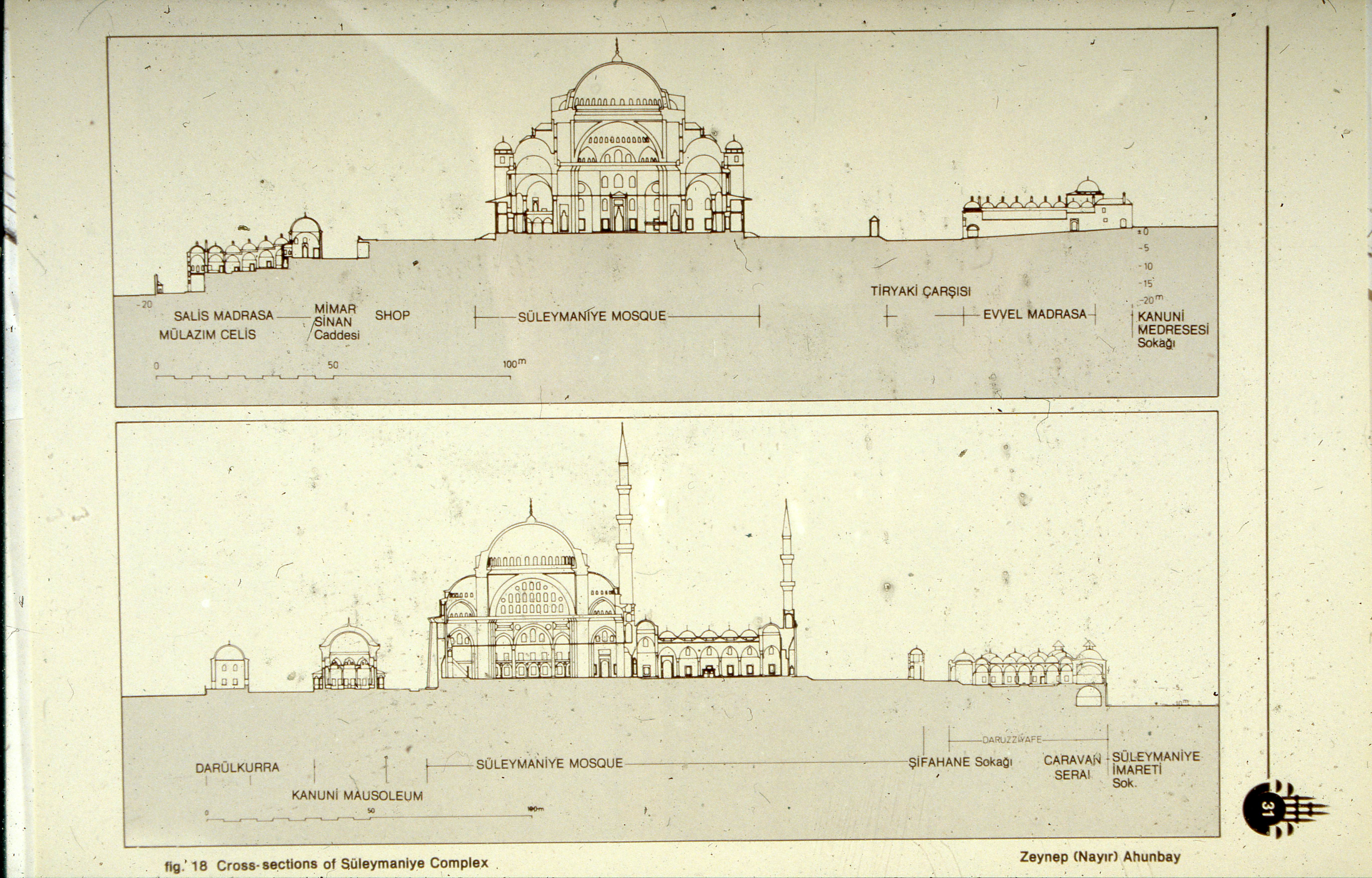Süleymaniye Complex-İstanbul, Kanuni Medresesi Street (Fatih)-İstanbul, Mimar Sinan Street (Fatih)-İstanbul, Süleymaniye İmareti Street (Fatih)-İstanbul, Şifahane Street (Fatih)-İstanbul, Süleymaniye Mosque (Fatih)-İstanbul, Mosques-İstanbul, Caravanserai (Fatih)-İstanbul, Evvel Madrasah (Fatih)-İstanbul, Salis Madrasah (Fatih)-İstanbul, Madrasahs-İstanbul, Darulkurra (Fatih)-İstanbul, Tiryaki Bazaar (Fatih)-İstanbul, Kanuni Sultan Süleyman Tomb (Fatih)-İstanbul, Tombs-İstanbul, Süleymaniye Complex-Drawings, Ahunbay, Zeynep, 1946-, Metropolitan Municipality of Greater İstanbul, Conservation Project for Süleymaniye Area, İstanbul-Turkey, Süleymaniye Neighborhood (Fatih)-İstanbul