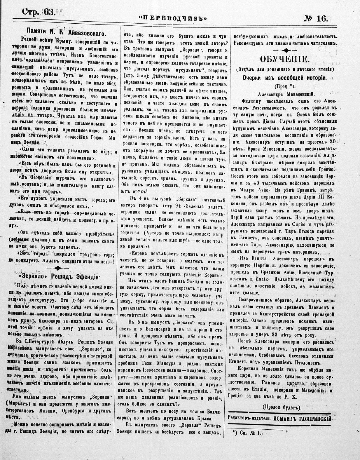 Turkish-Russian newspaper published in Crimea by İsmail Gaspıralı.