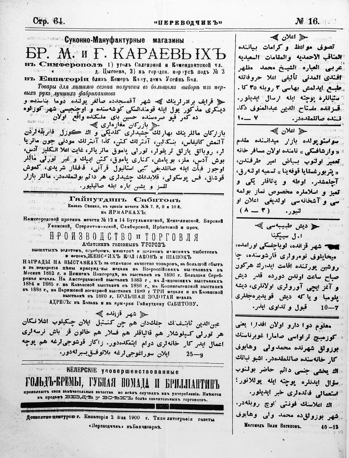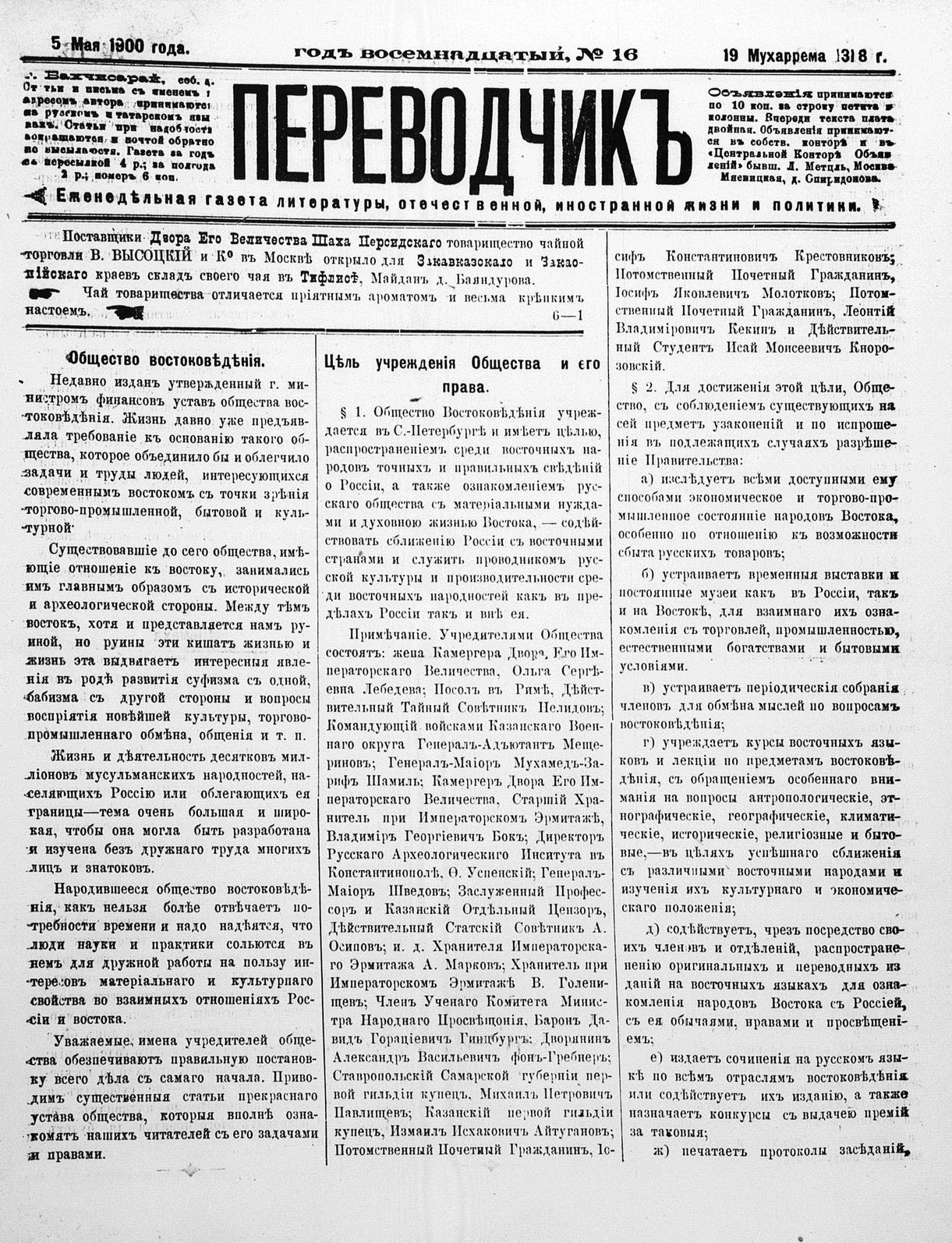 Tercüman, 05 May 1900 Year 18 No 16