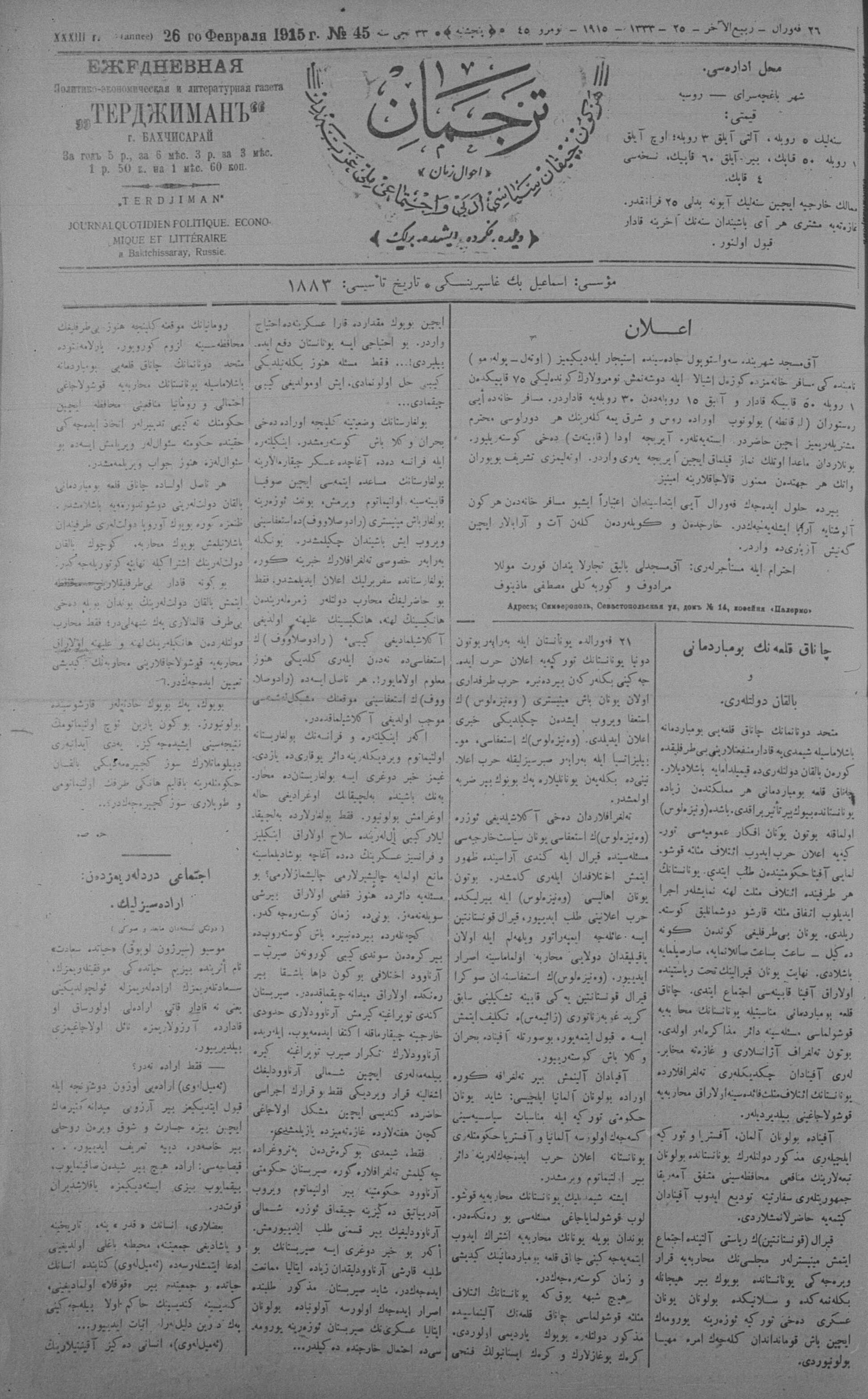 Tercüman, 26 February 1915 Year 33 No 45