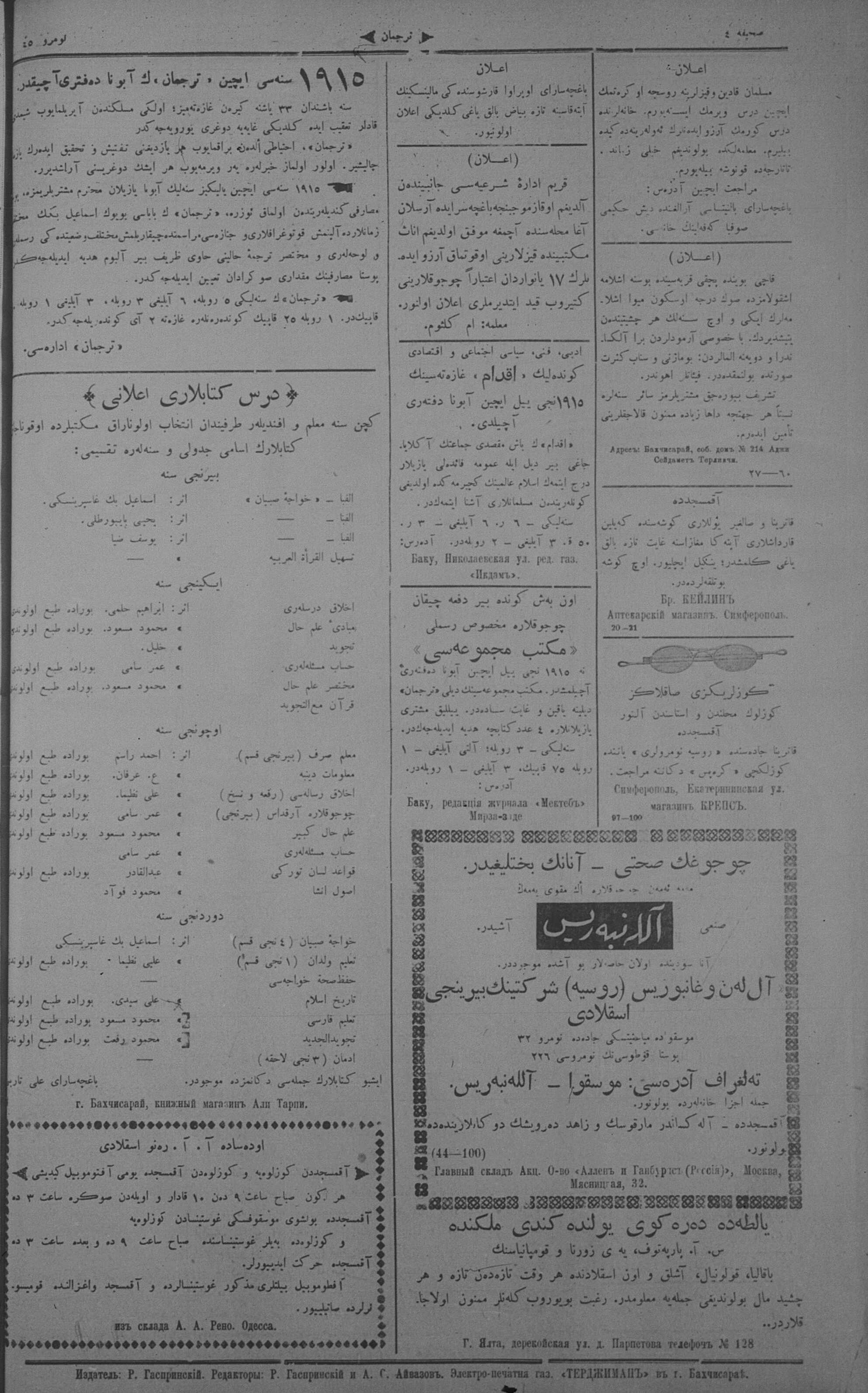 Turkish-Russian newspaper published in Crimea by İsmail Gaspıralı.