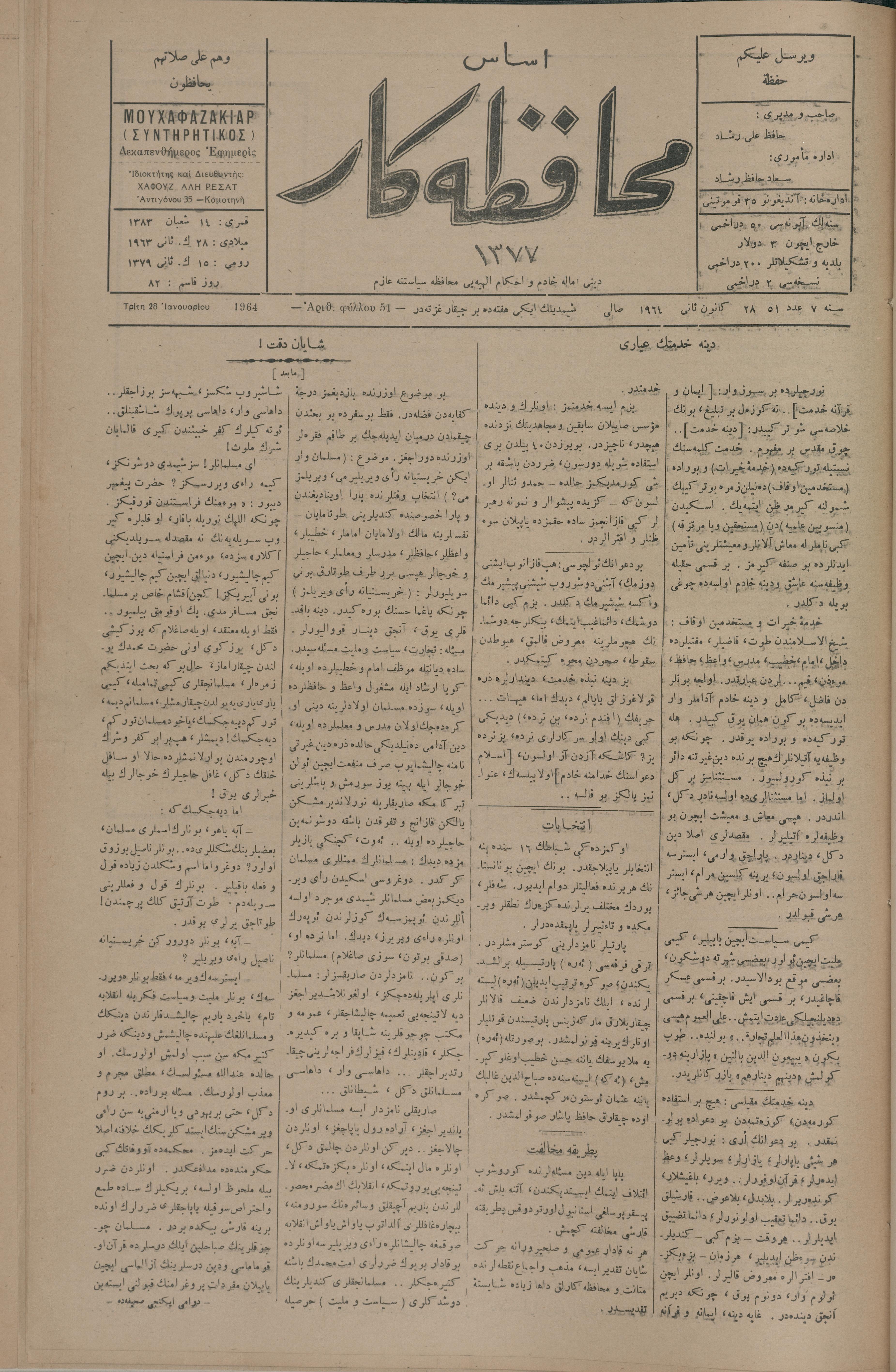 Esas muhafazakâr 1377, 28 Ocak 1964 Sene 7 Aded 51