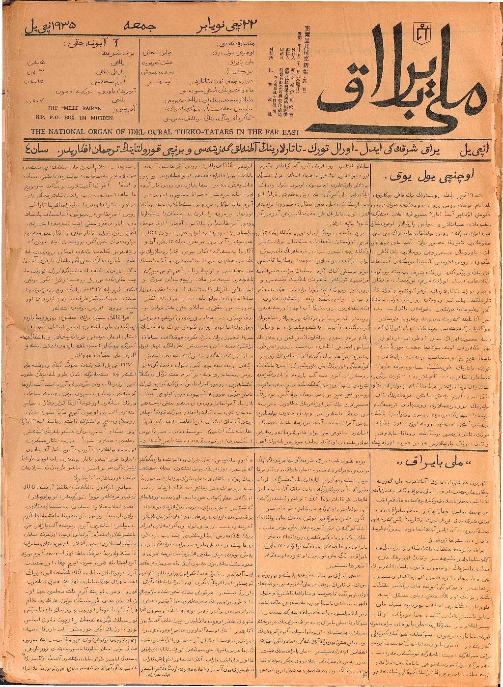 The Milli Bayrak newspaper was written in Tatar with Arabic script.