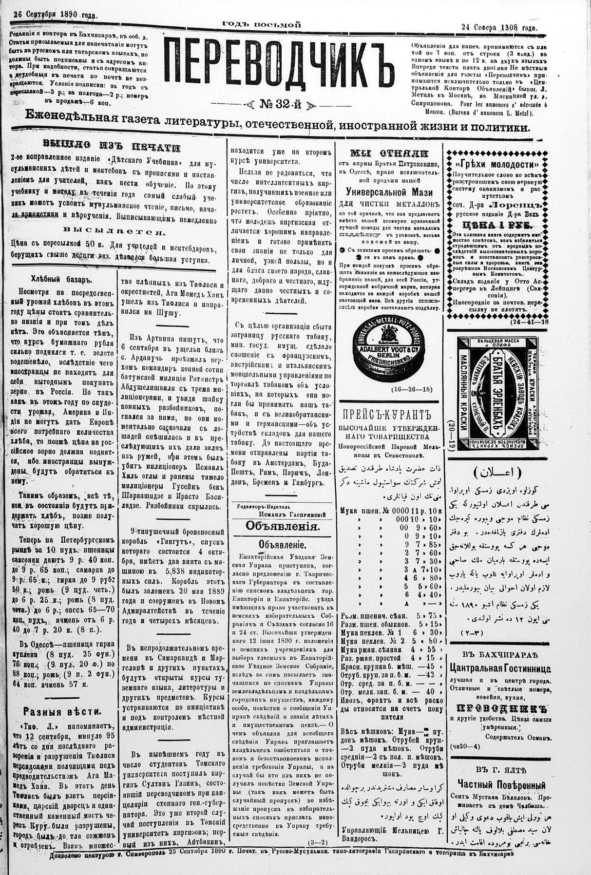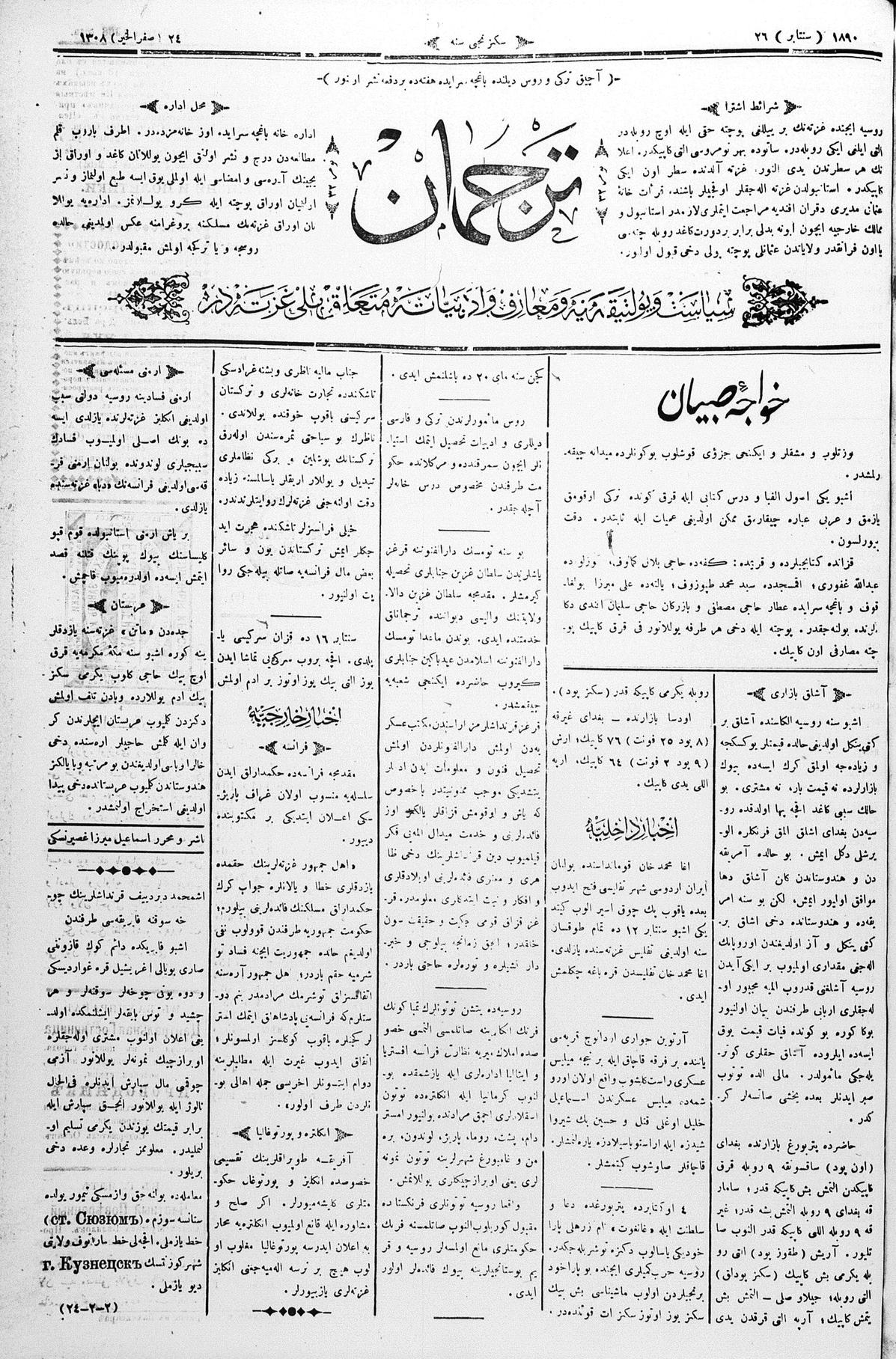 Tercüman, 26 September 1890 Year 8 No 32
