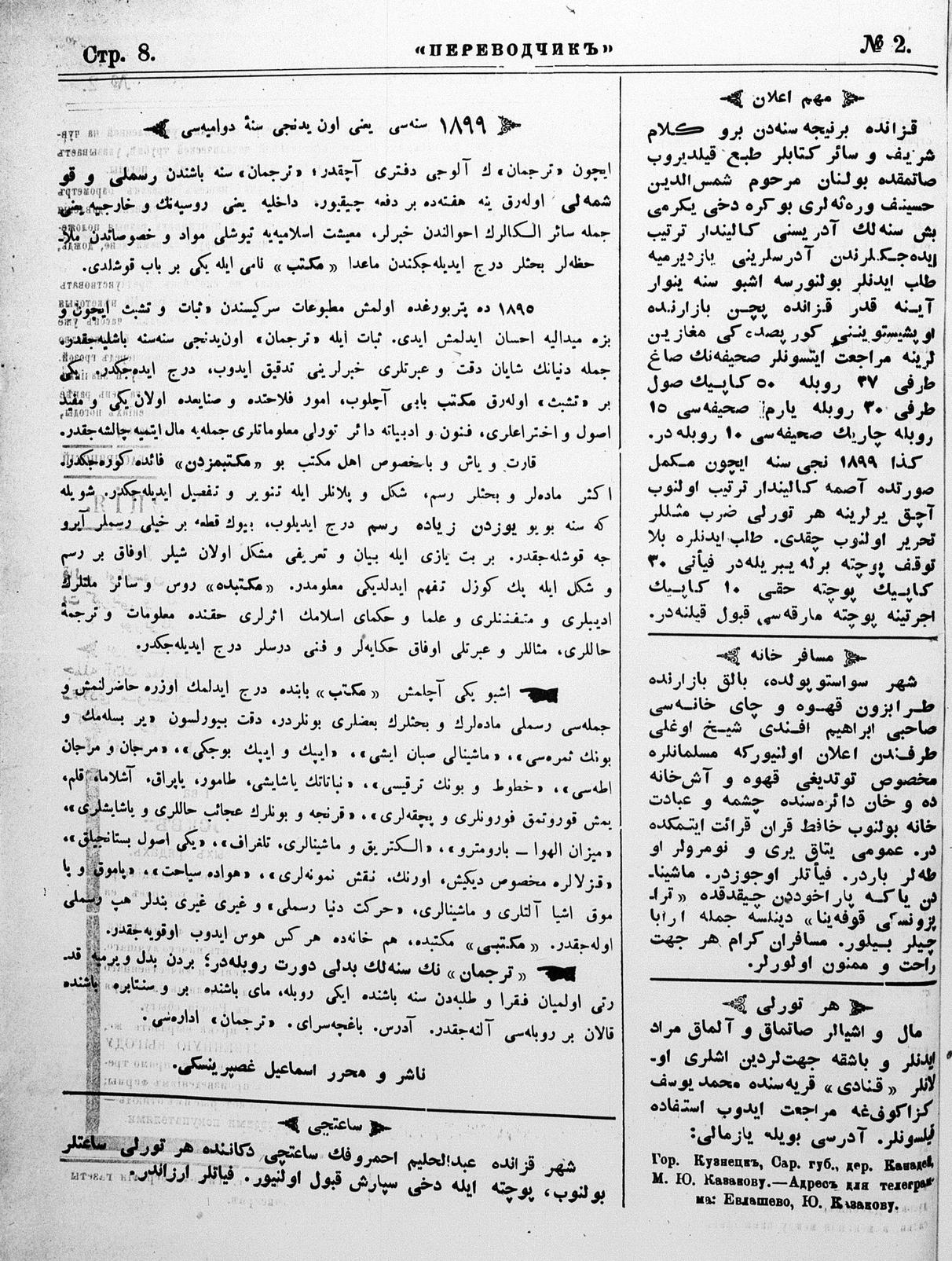 Turkish-Russian newspaper published in Crimea by İsmail Gaspıralı.