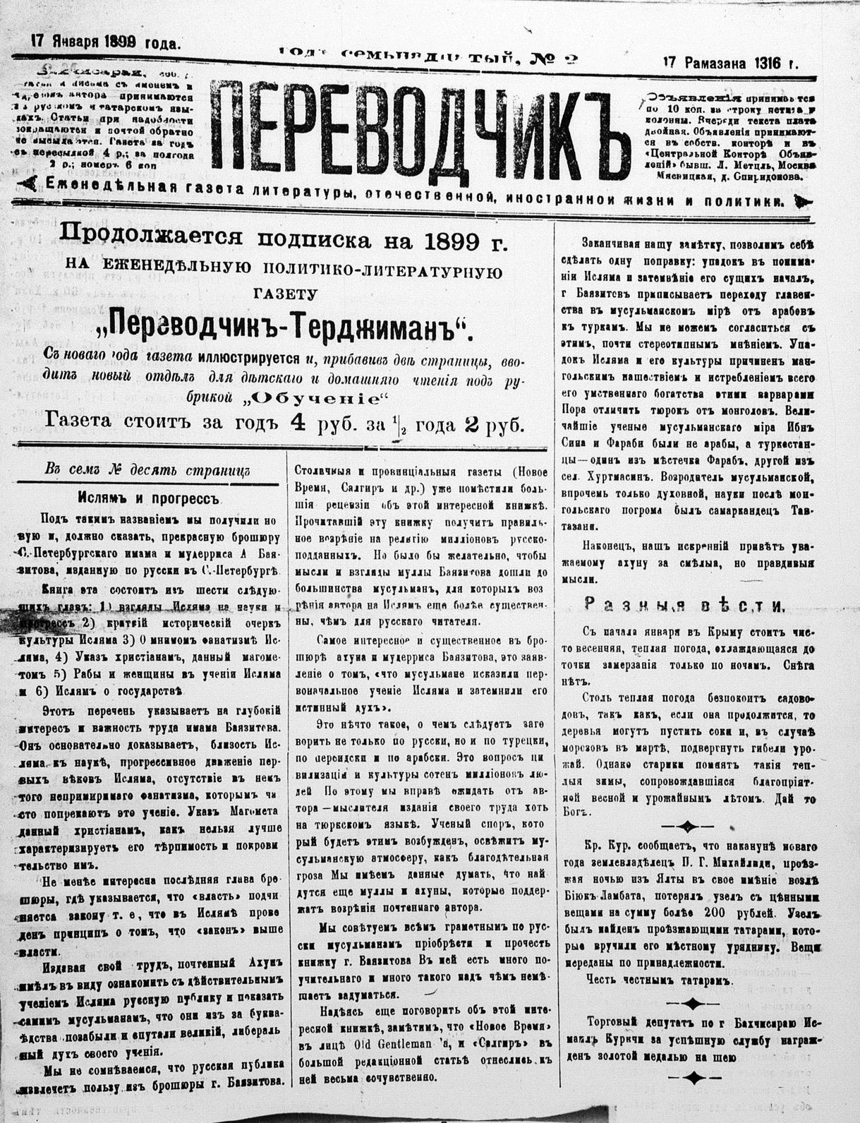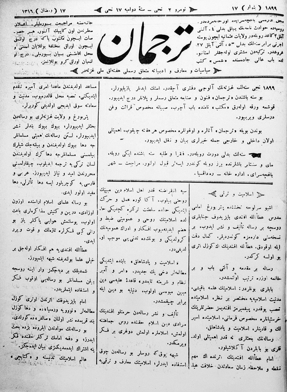 Tercüman, 17 January 1899 Year 17 No 2
