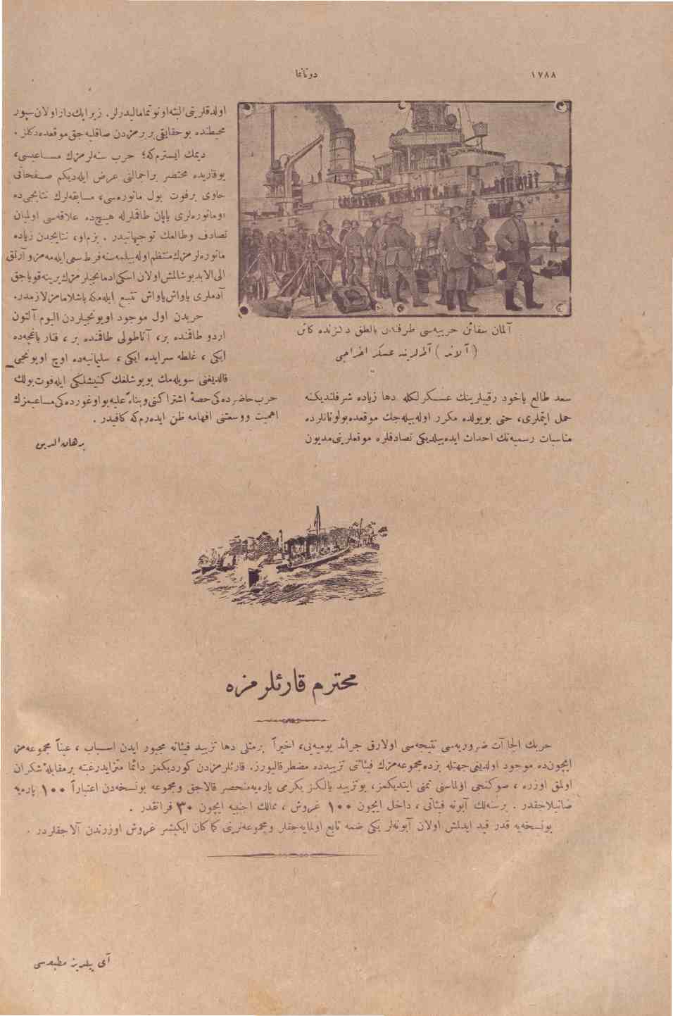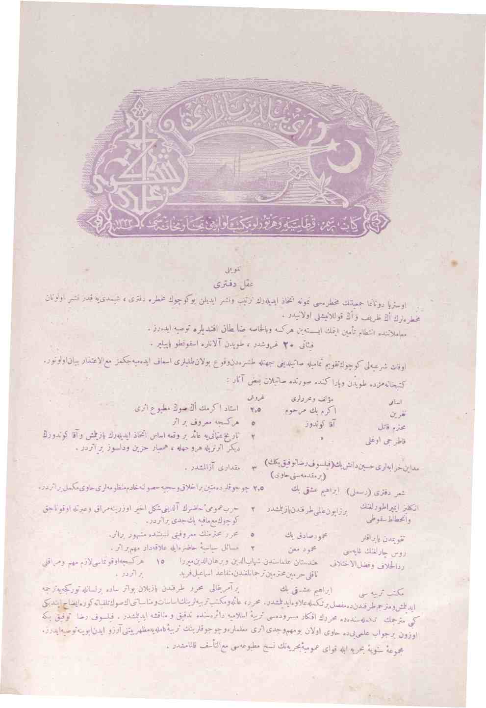 The name of the periodical was published under the following titles in different periods: Donanma: Donanma Cemiyetinin haftalık gazetesi; Donanma: istikbal denizlerdedir; Donanma: şimdilik ayda bir defa neşrolunur; Donanma: ayda bir defa neşr olunur, musavver, ahlaki, edebi, tarihi, fenni mecmuadır.