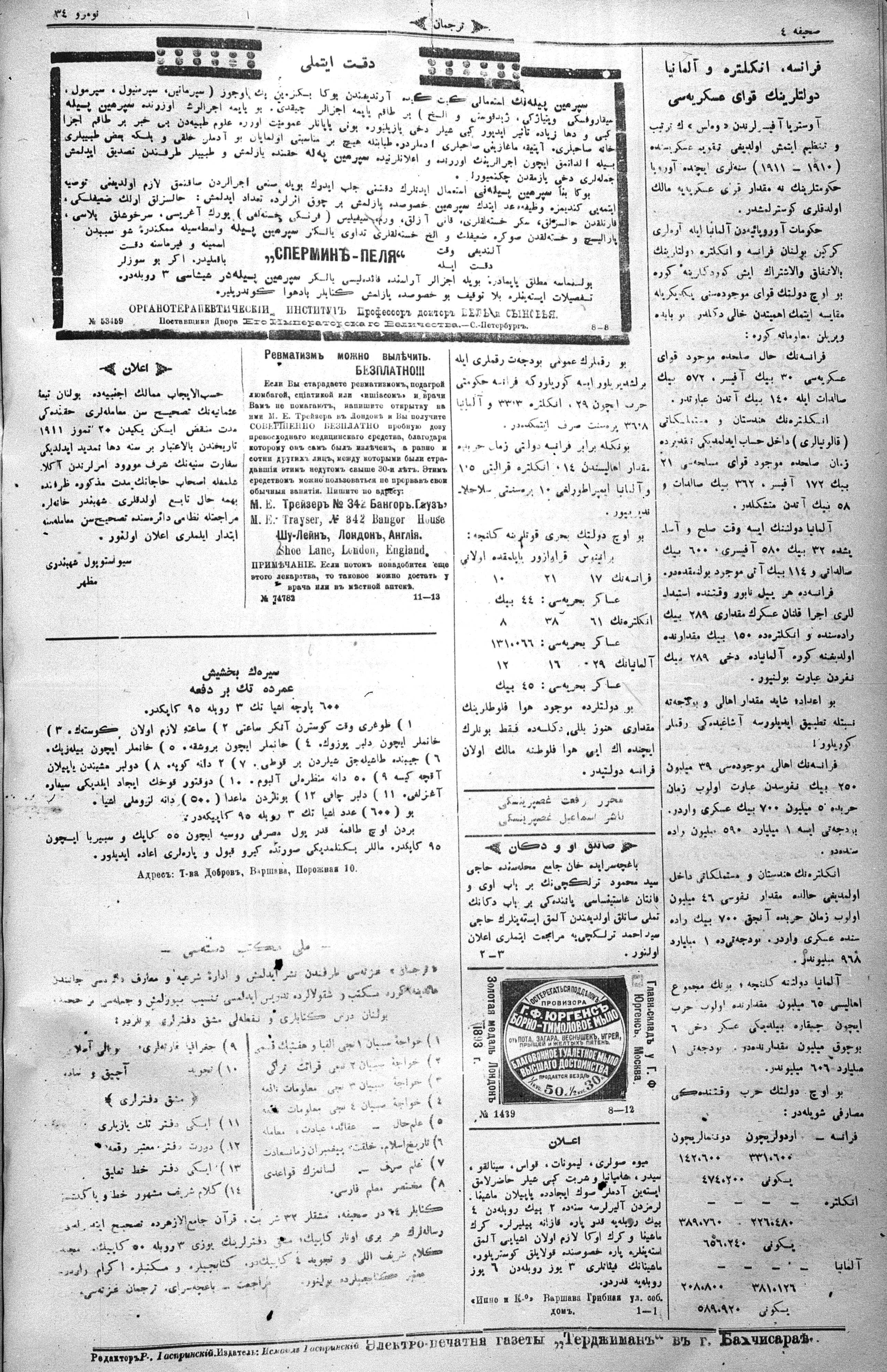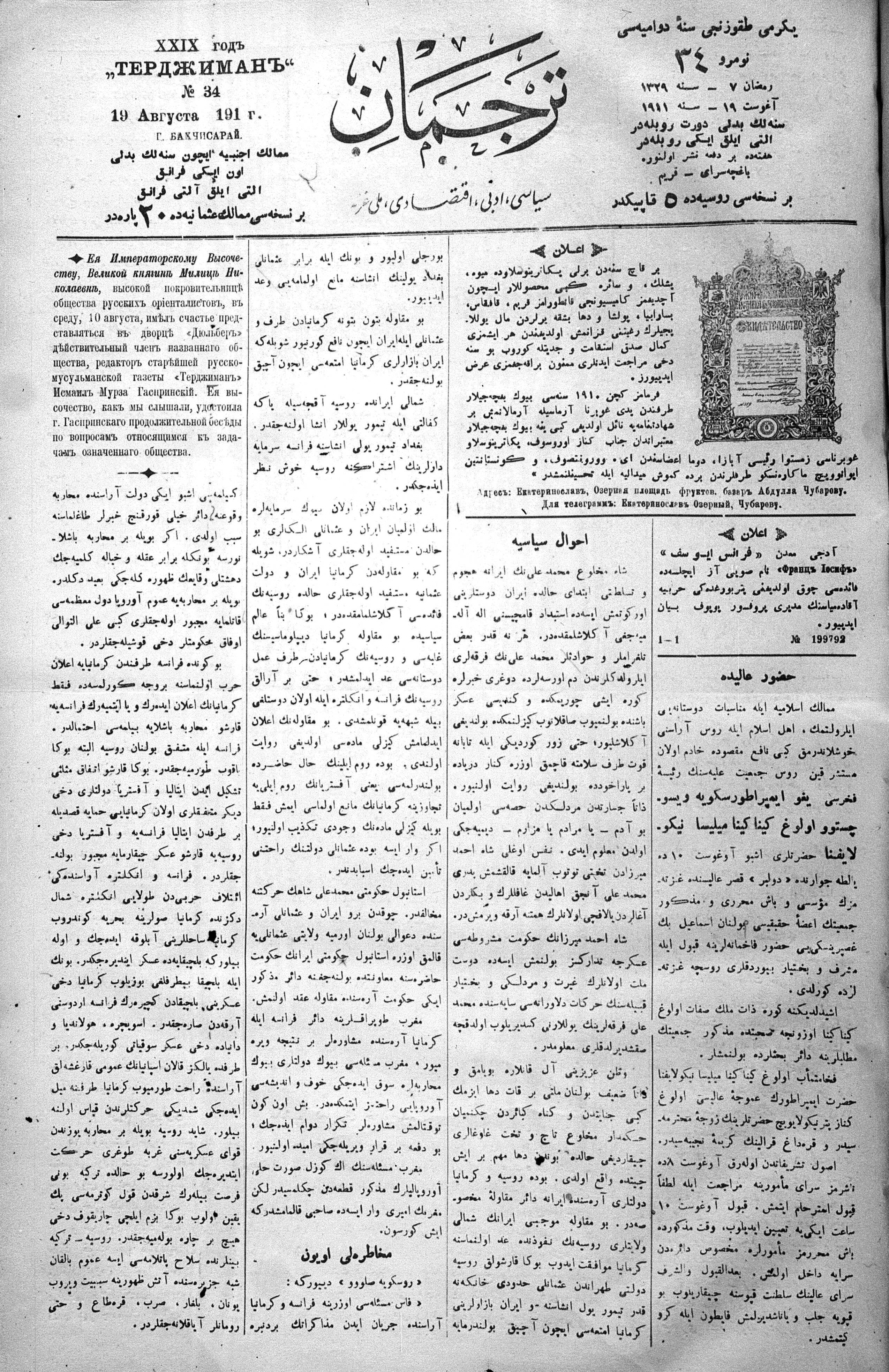 Tercüman, 19 August 1911 Year 29 No 34