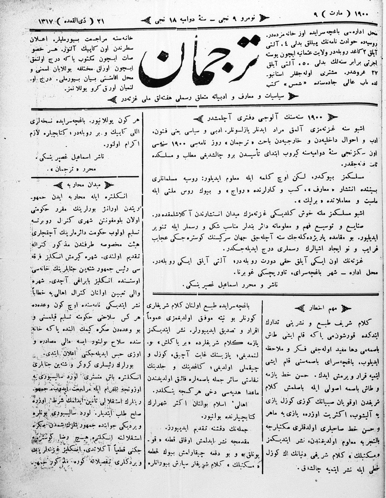 Turkish-Russian newspaper published in Crimea by İsmail Gaspıralı.