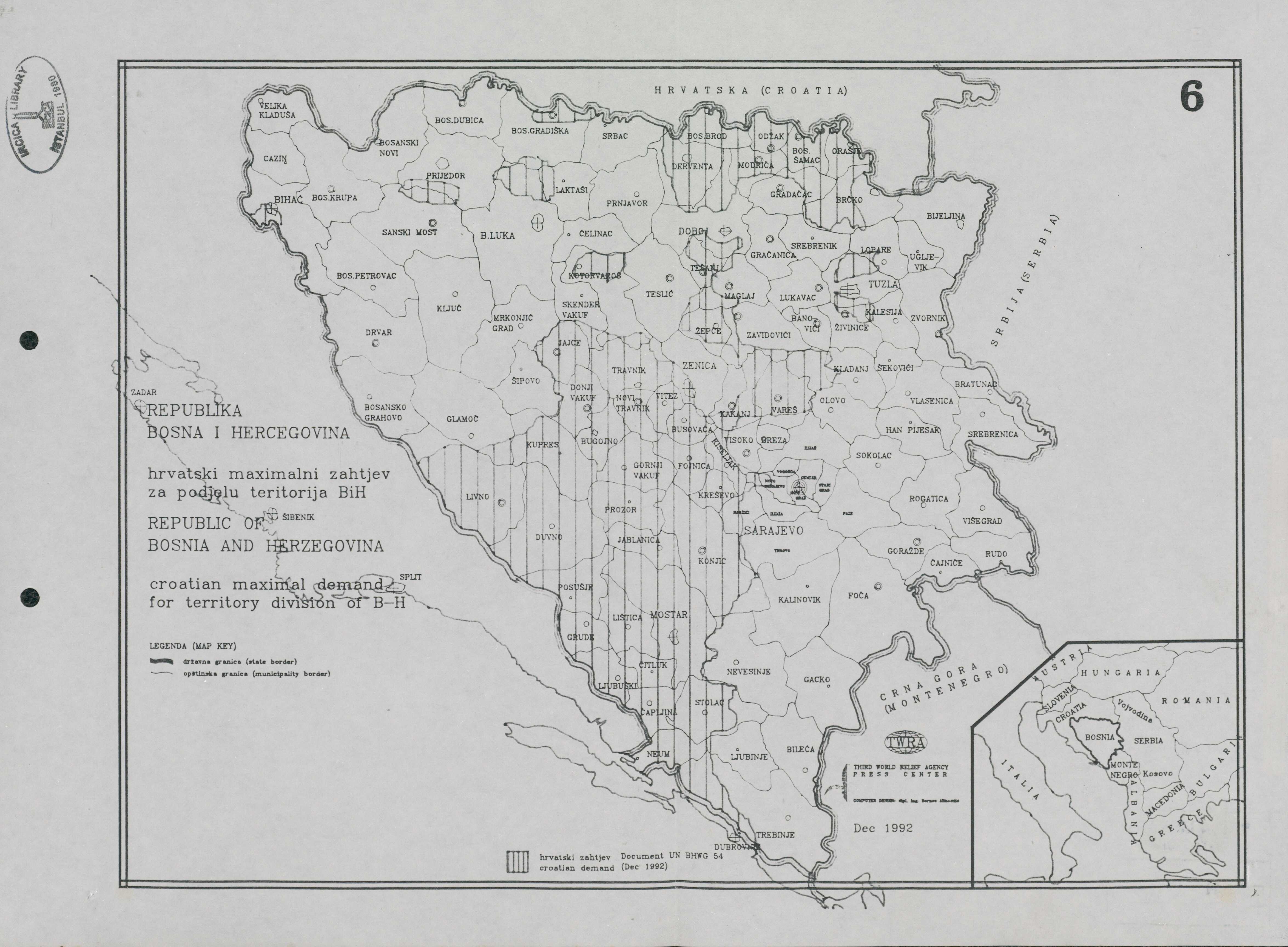 Republika Bosna i Hercegovina: Hrvatski maksimalni zahtjev za podjelu teritorija BİH