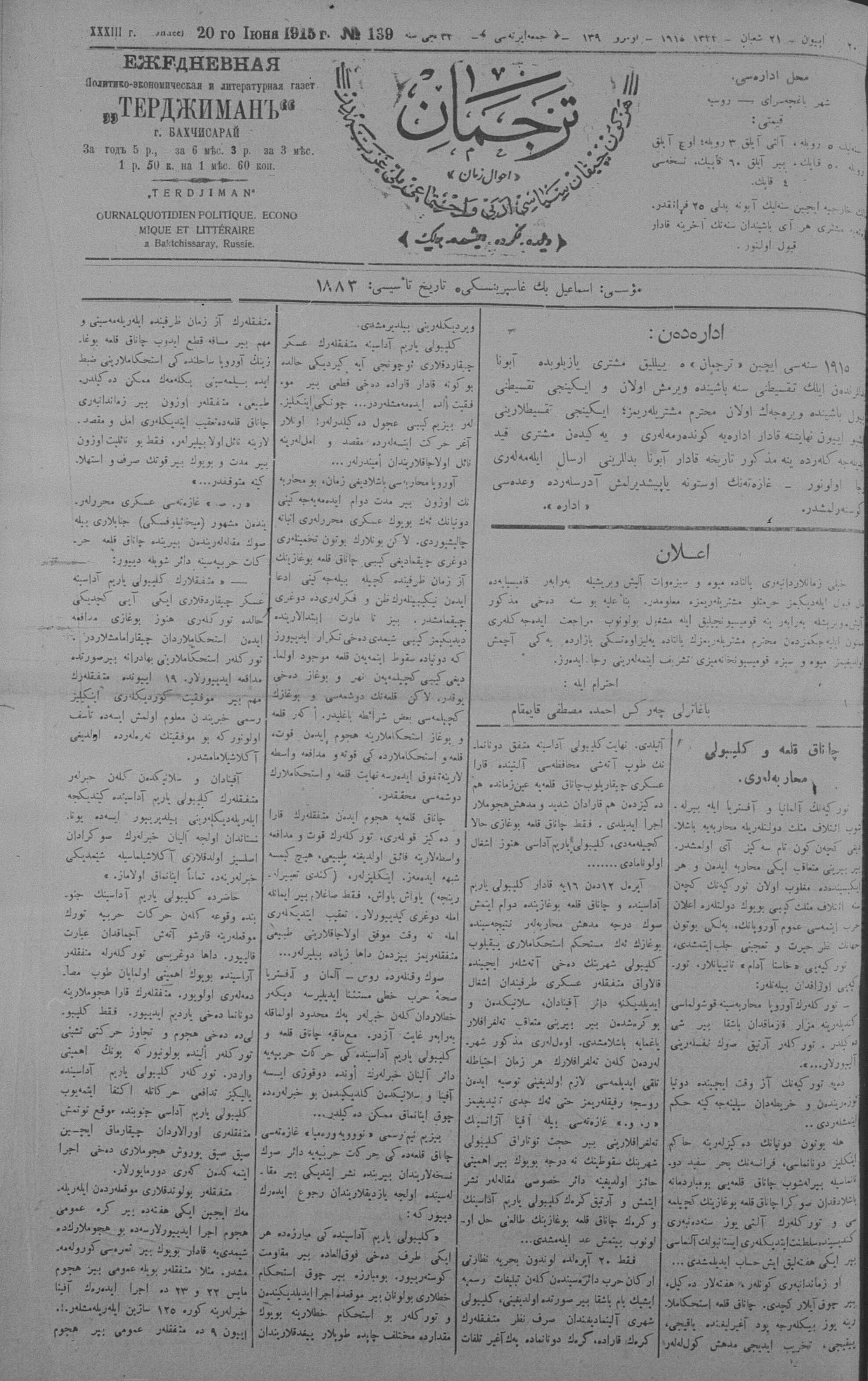 Turkish-Russian newspaper published in Crimea by İsmail Gaspıralı.