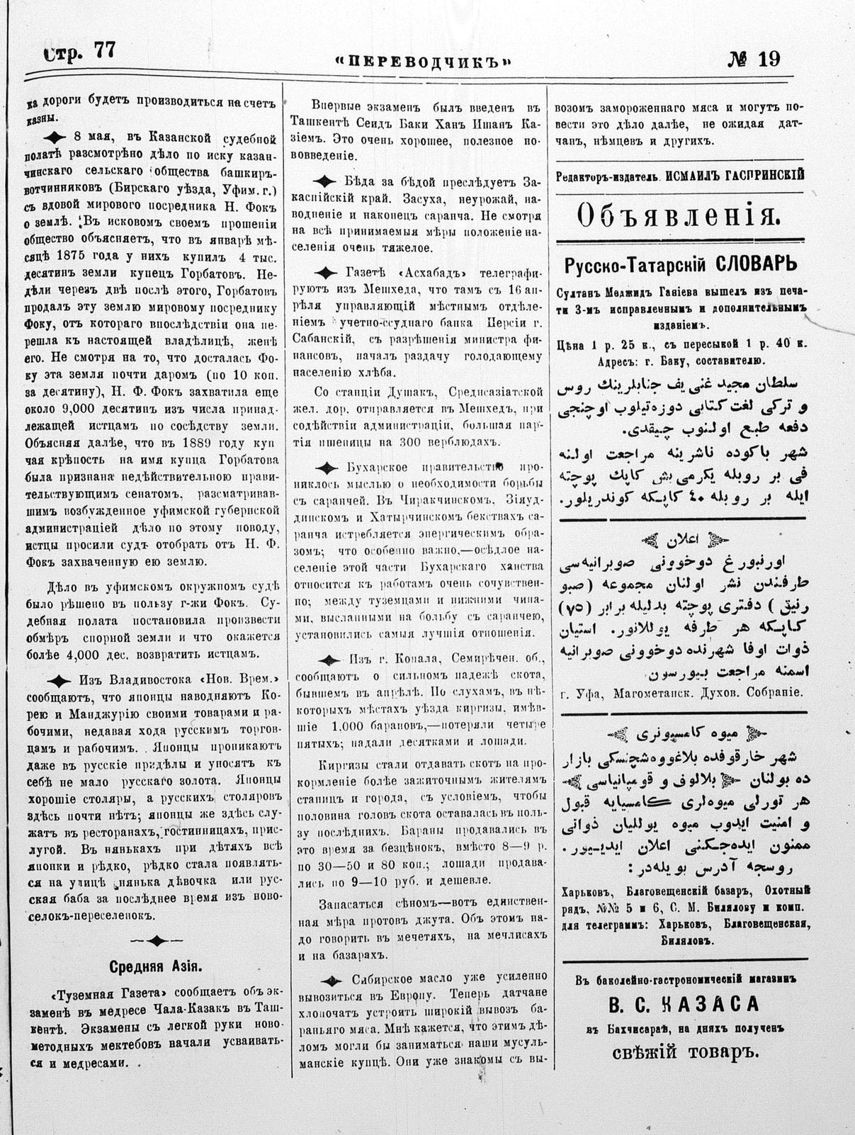 Turkish-Russian newspaper published in Crimea by İsmail Gaspıralı.