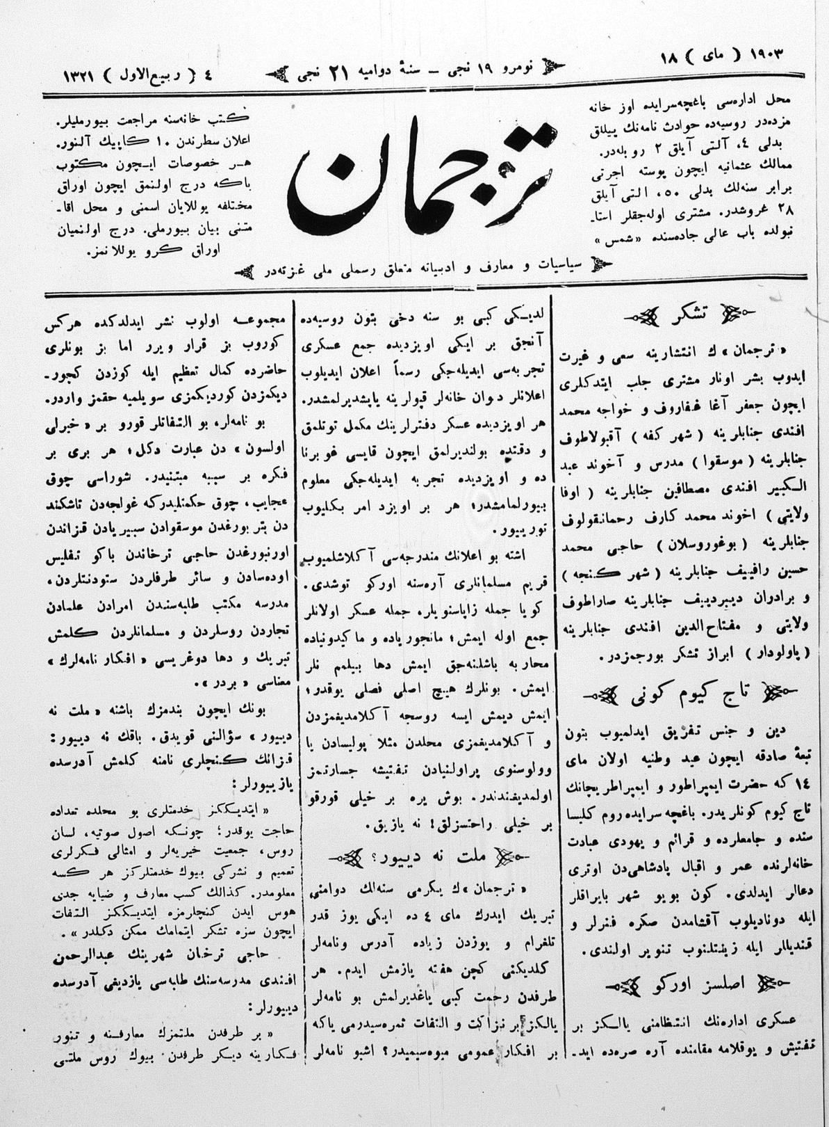 Tercüman, 18 May 1903 Year 21 No 19