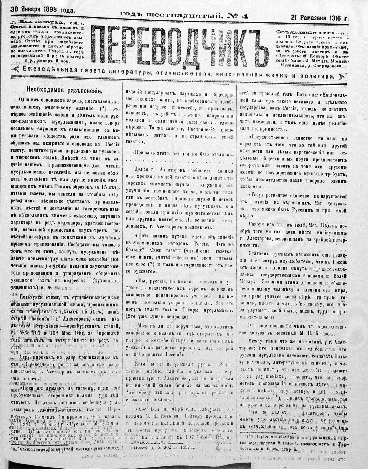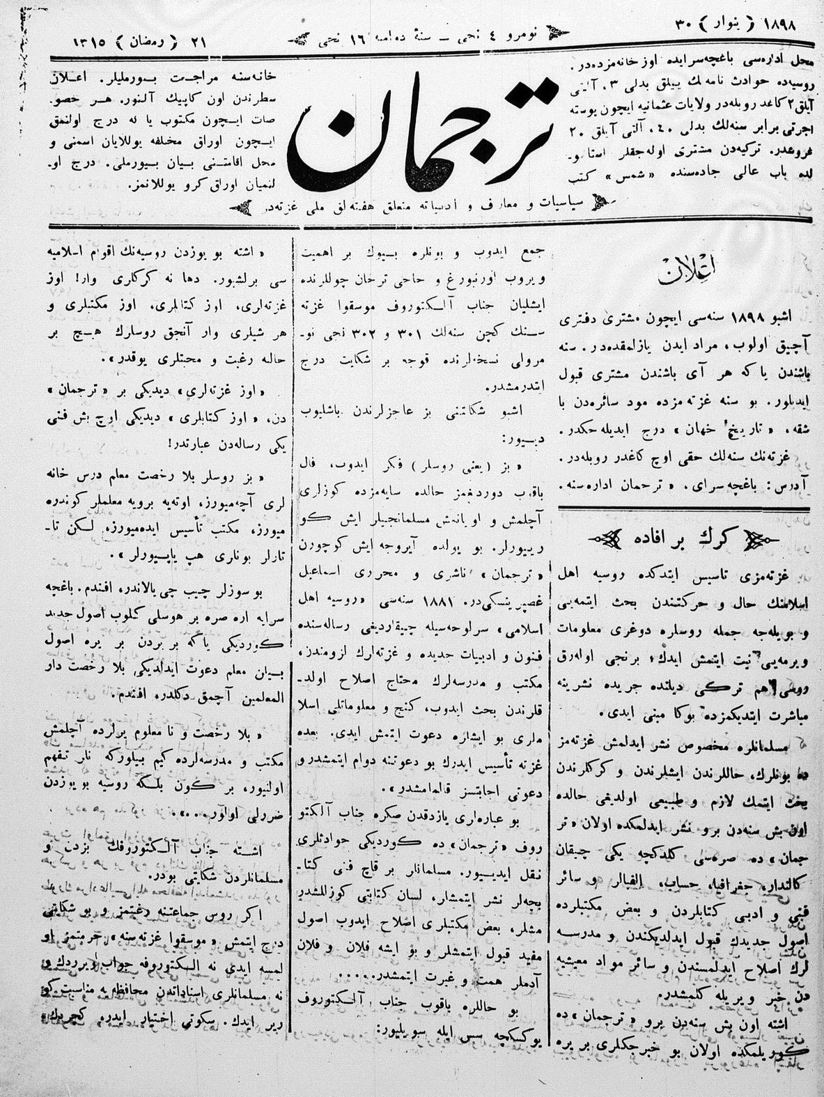 Tercüman, 30 January 1898 Year 16 No 4