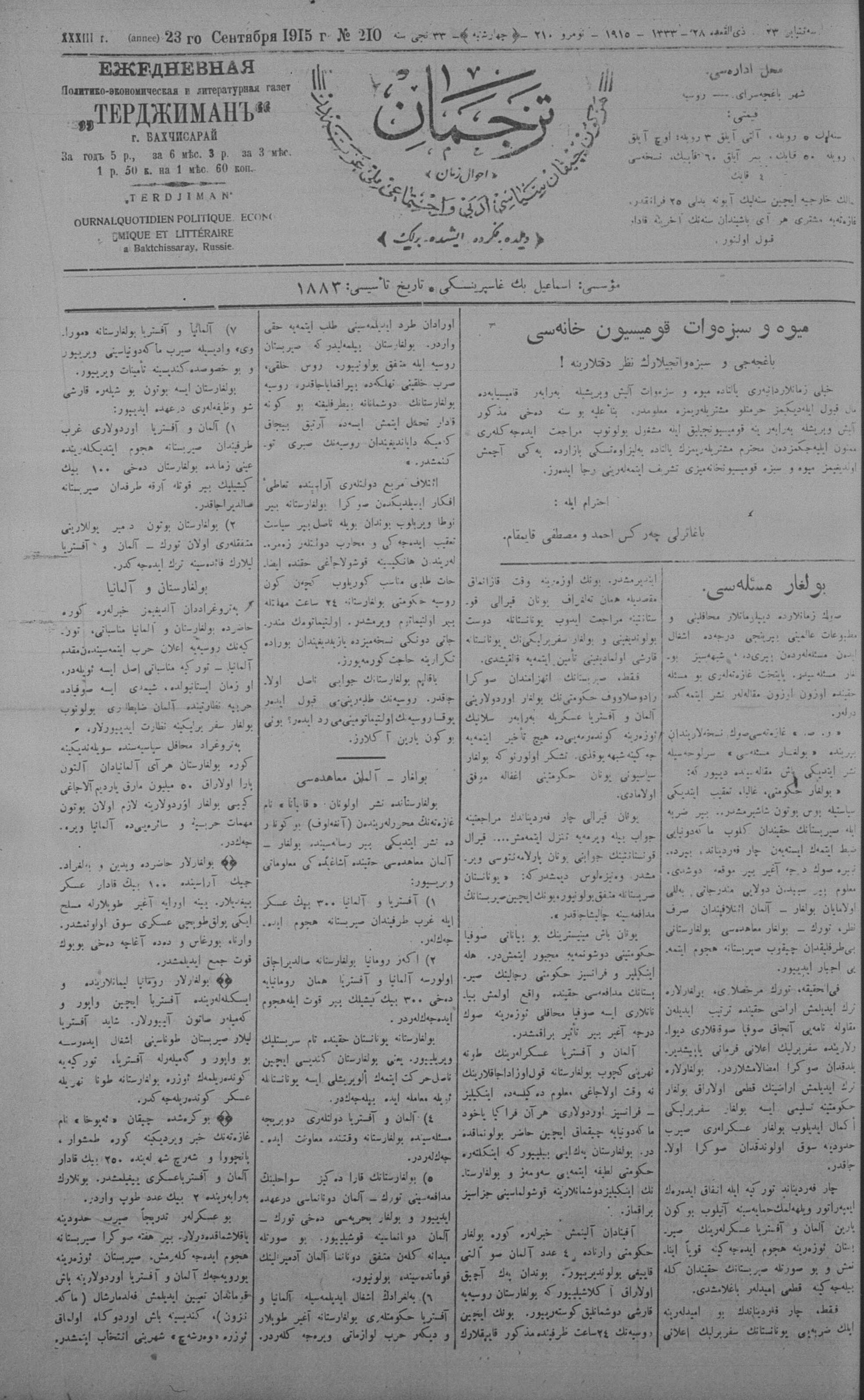 Turkish-Russian newspaper published in Crimea by İsmail Gaspıralı.