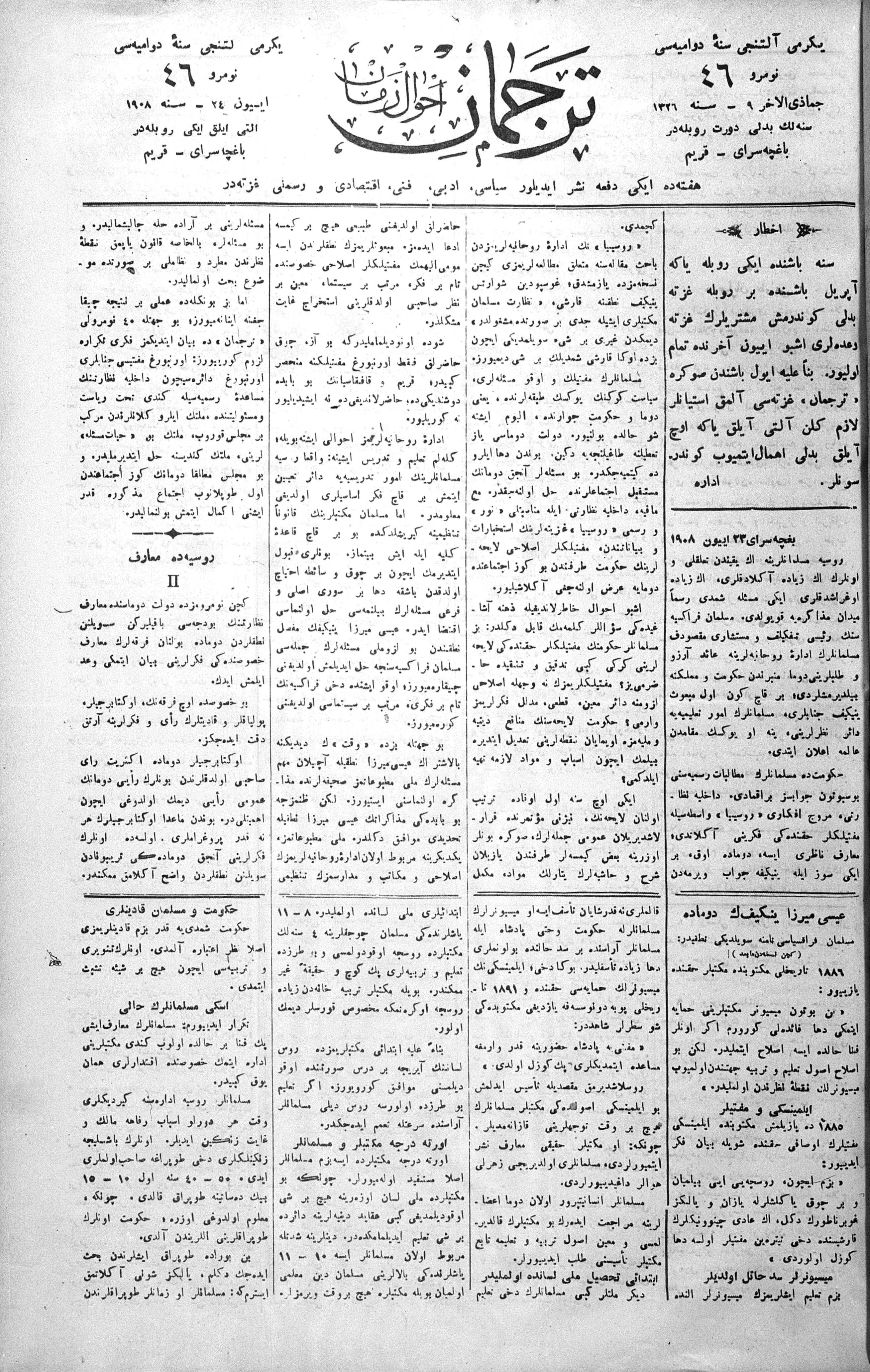 Turkish-Russian newspaper published in Crimea by İsmail Gaspıralı.