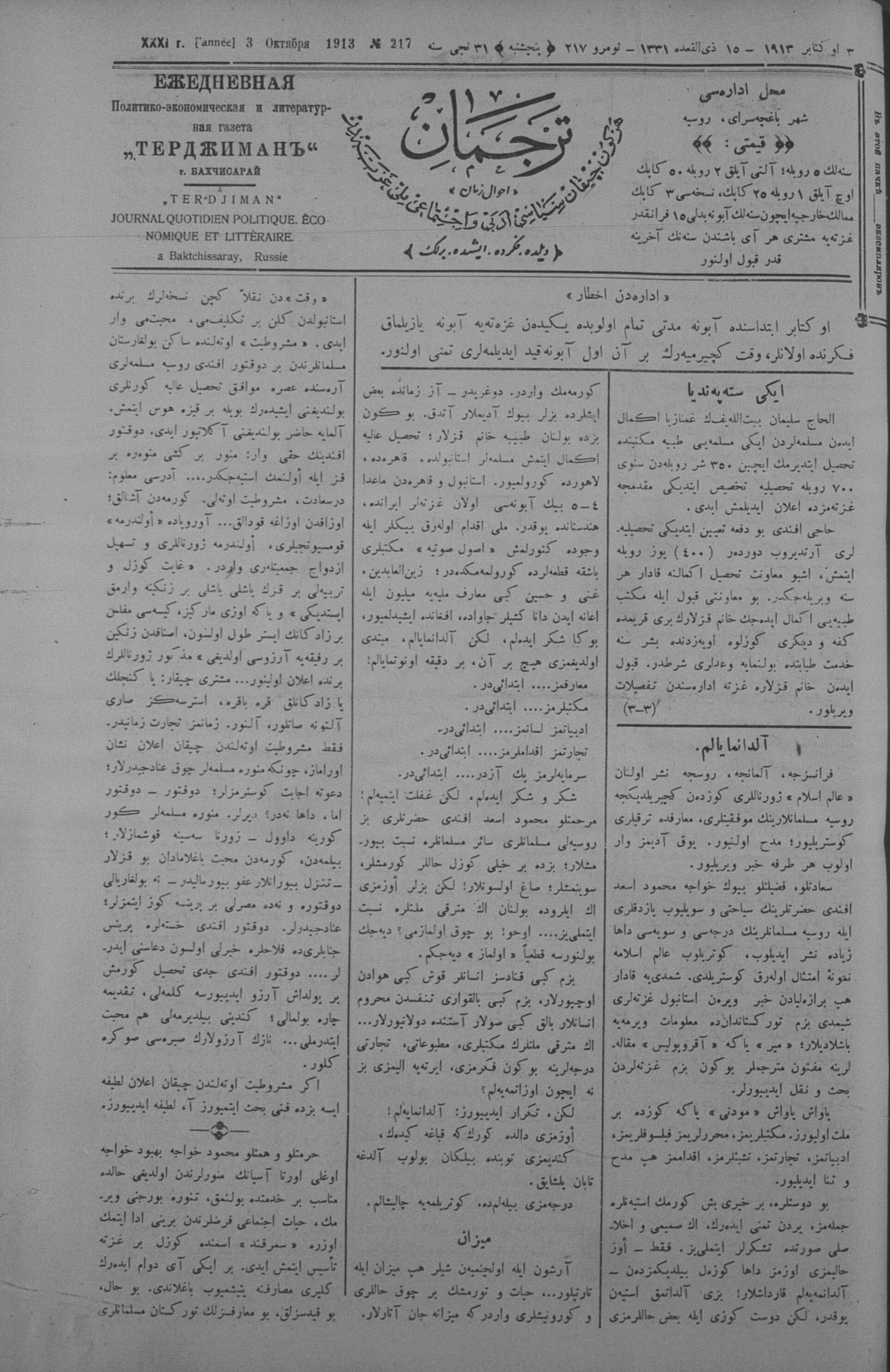 Tercüman, 03 October 1913 Year 31 No 217