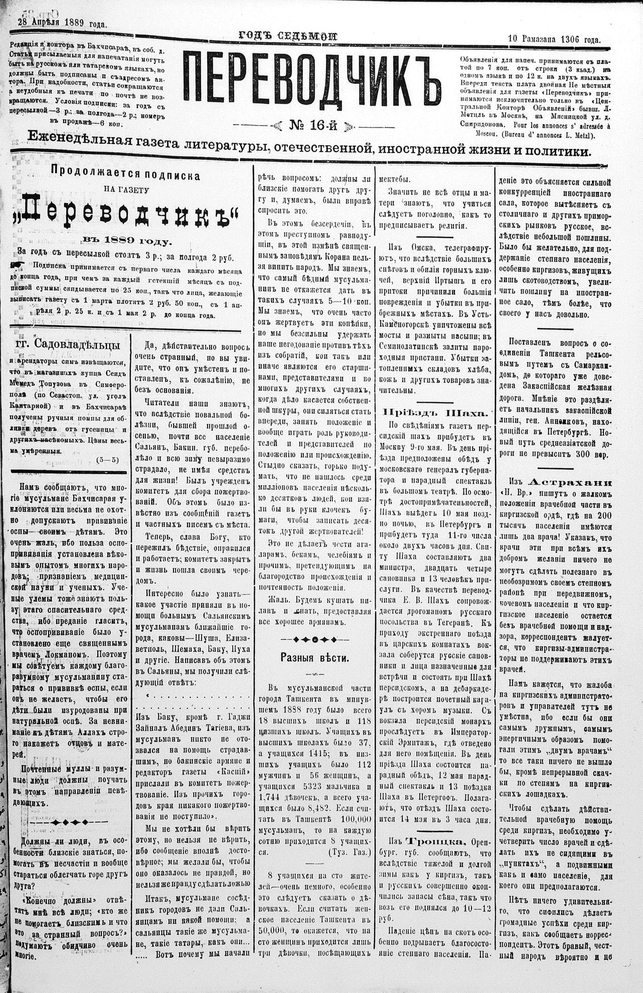 Tercüman, 28 April 1889 Year 7 No 16