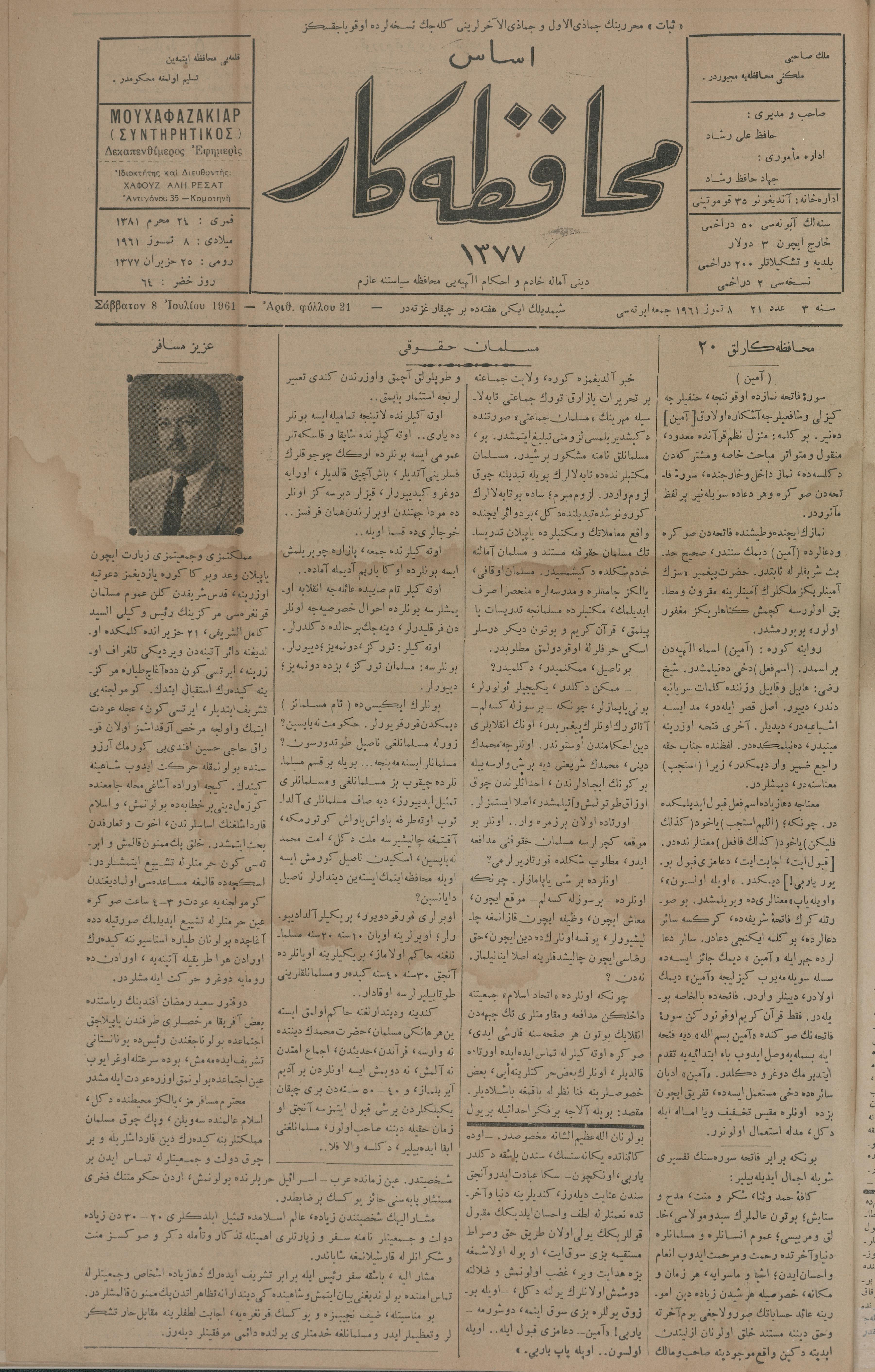 Esas muhafazakâr 1377, 8 Temmuz 1961 Sene 3 Aded 21
