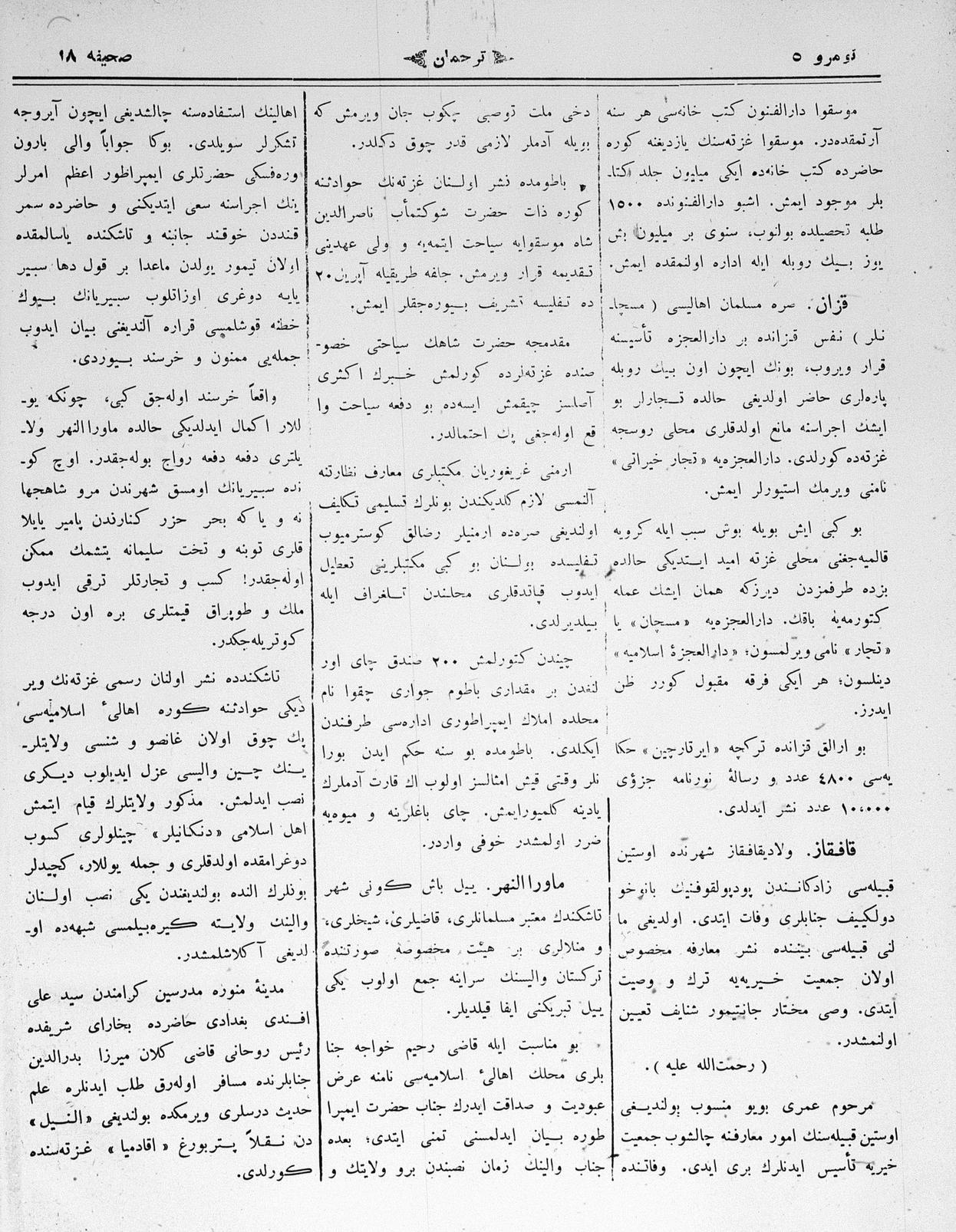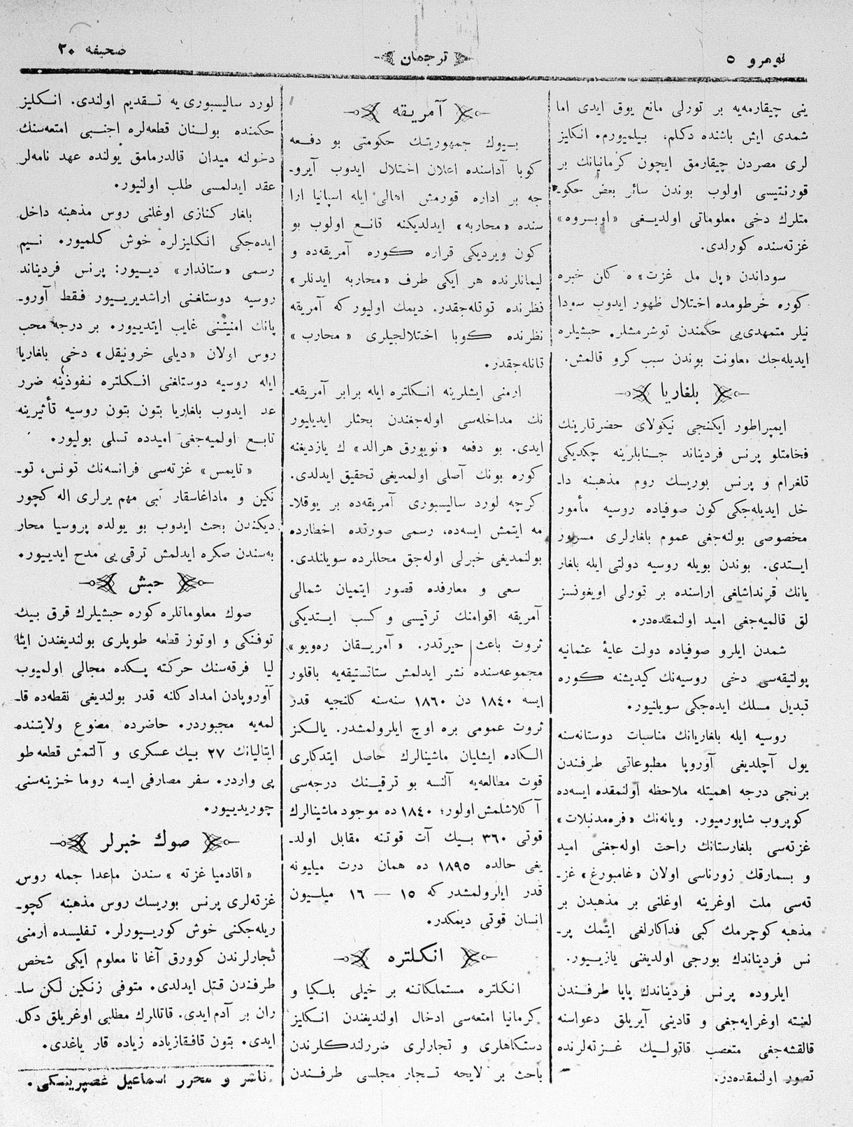 The name of the newspaper changed to Tercüman-ı Ahval-i Zaman in 1905. In 1909, it started to be published under its first name, Tercüman.