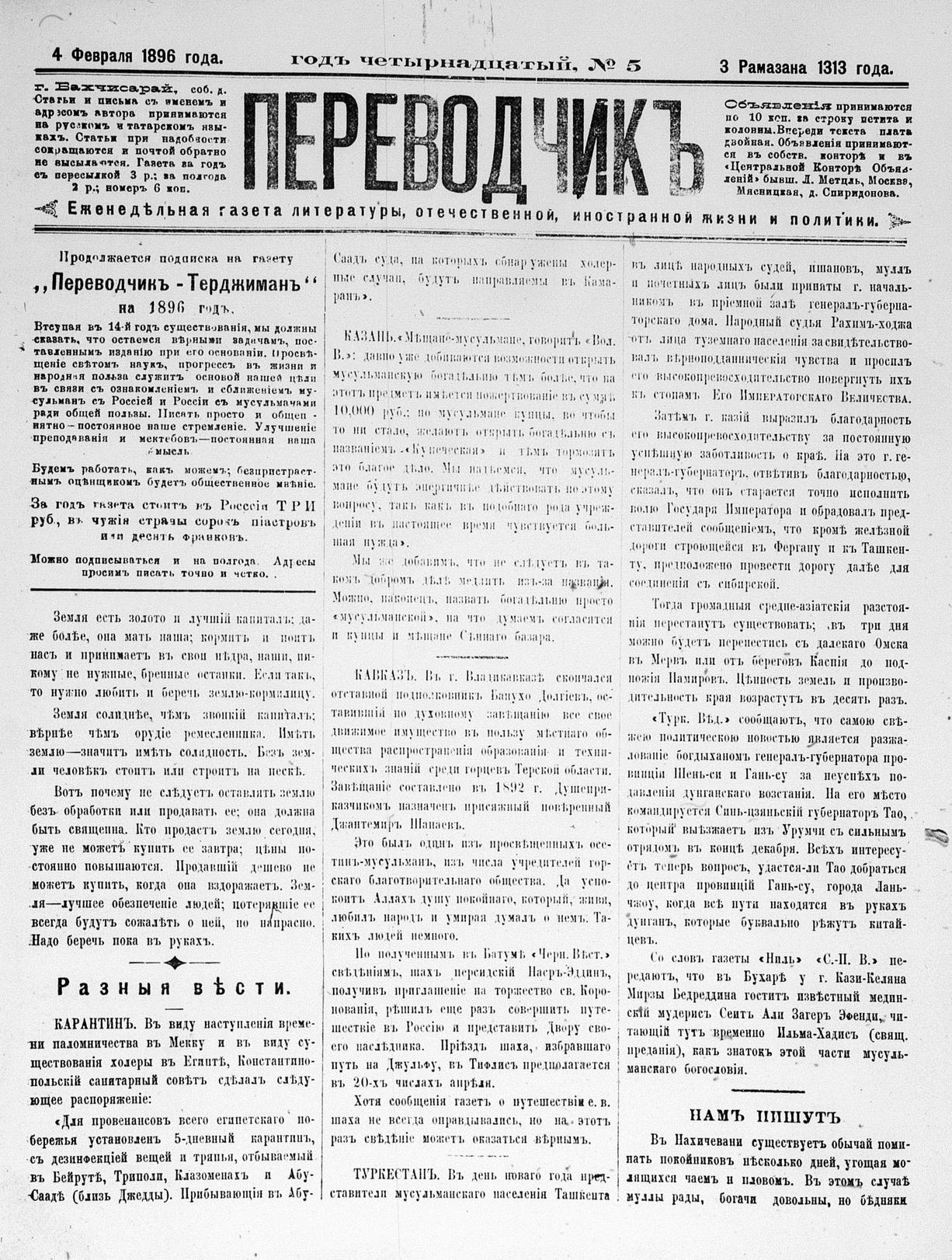 Turkish-Russian newspaper published in Crimea by İsmail Gaspıralı.