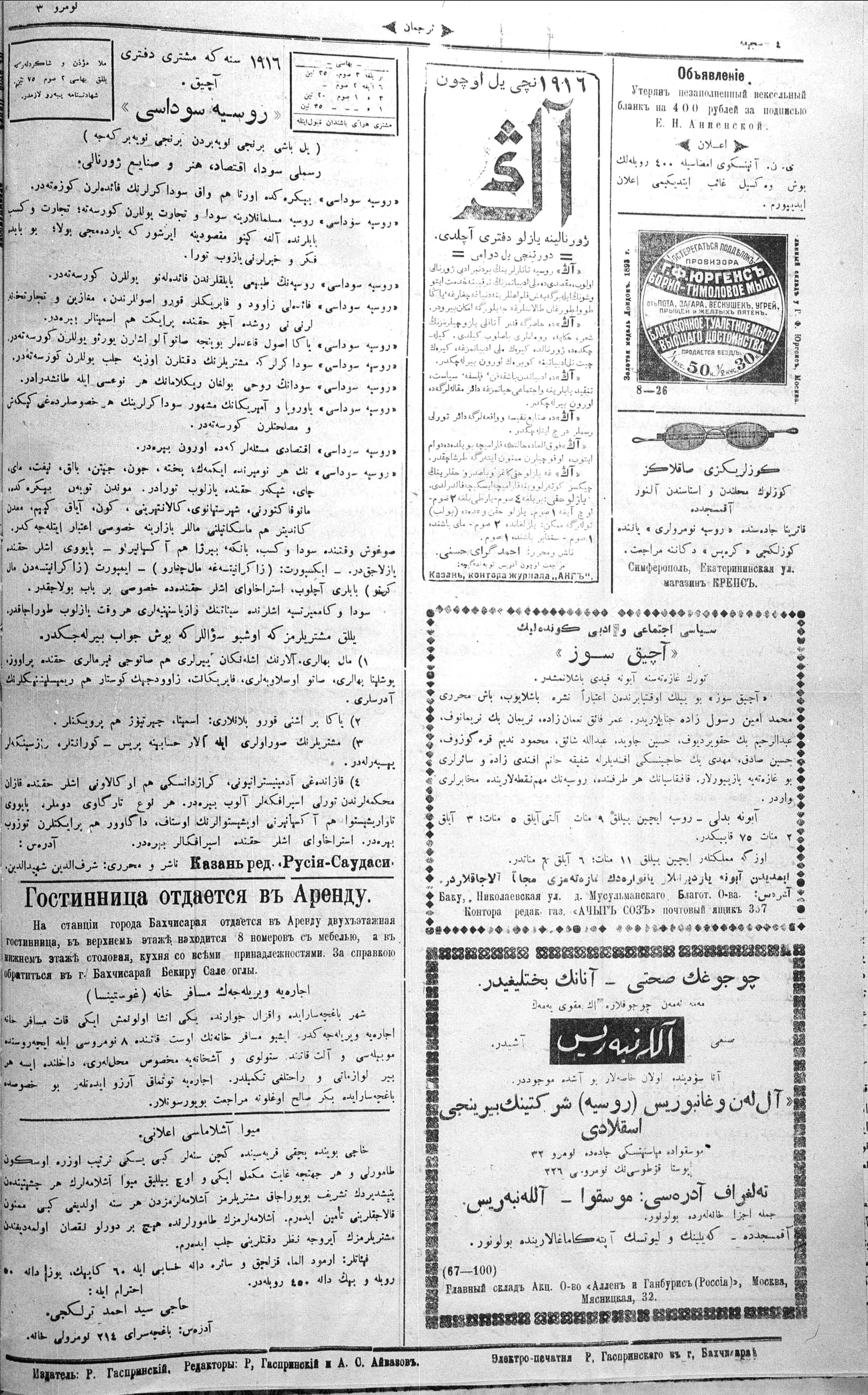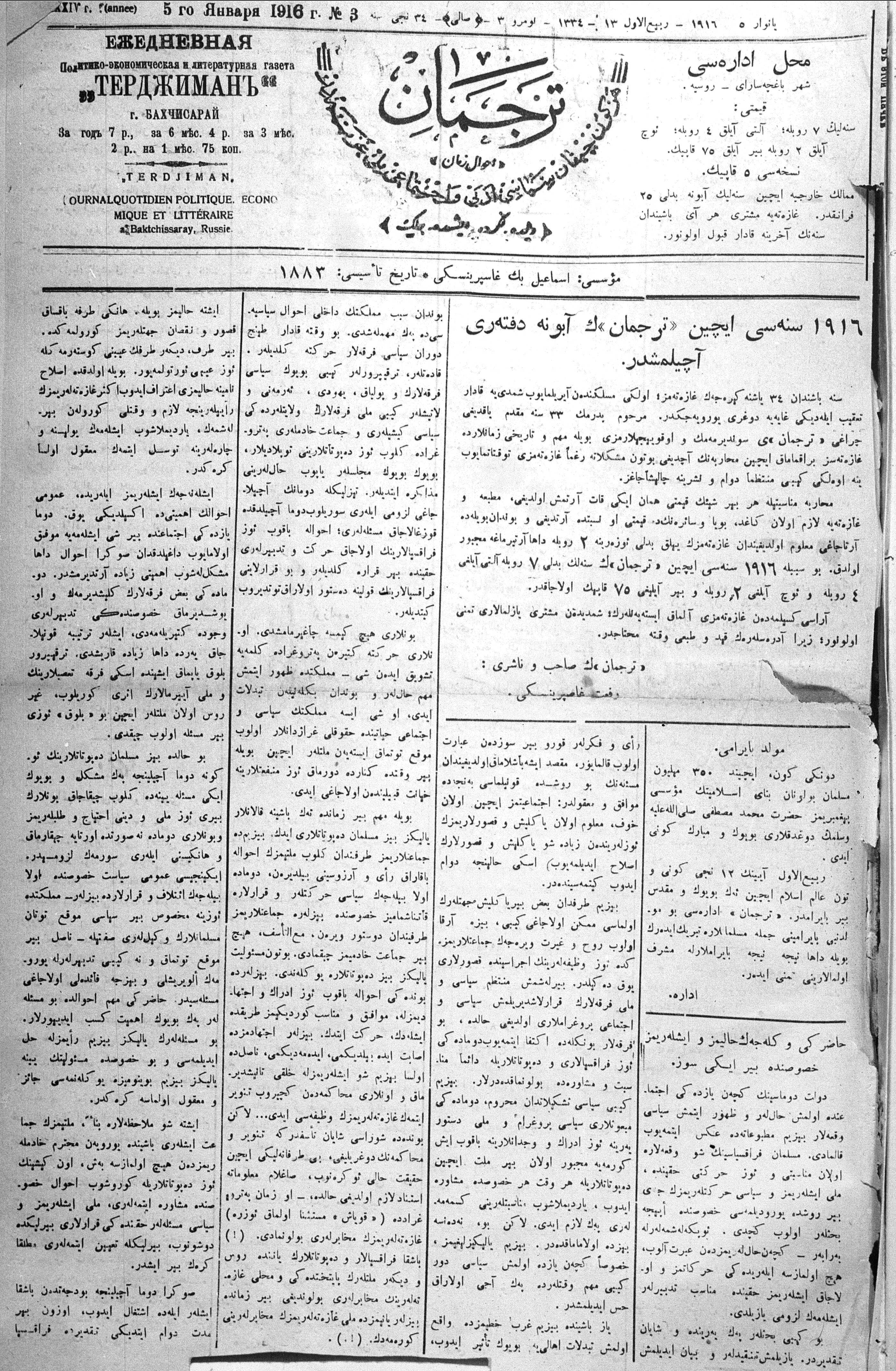 Turkish-Russian newspaper published in Crimea by İsmail Gaspıralı.