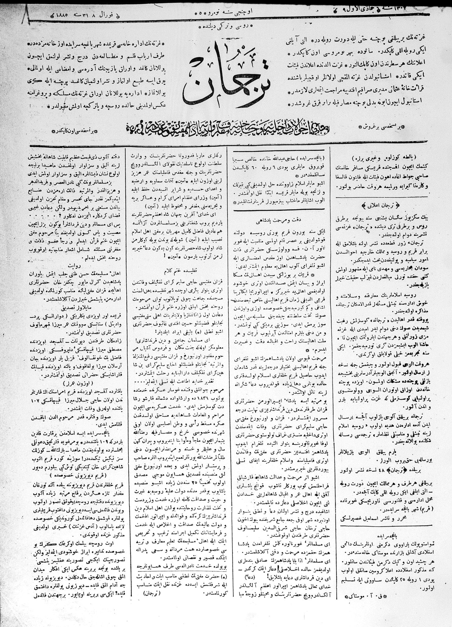 Different spellings of the name Tercüman Newspaper: Terdzhiman, Terjuman, Perevodçik and Terjiman.
