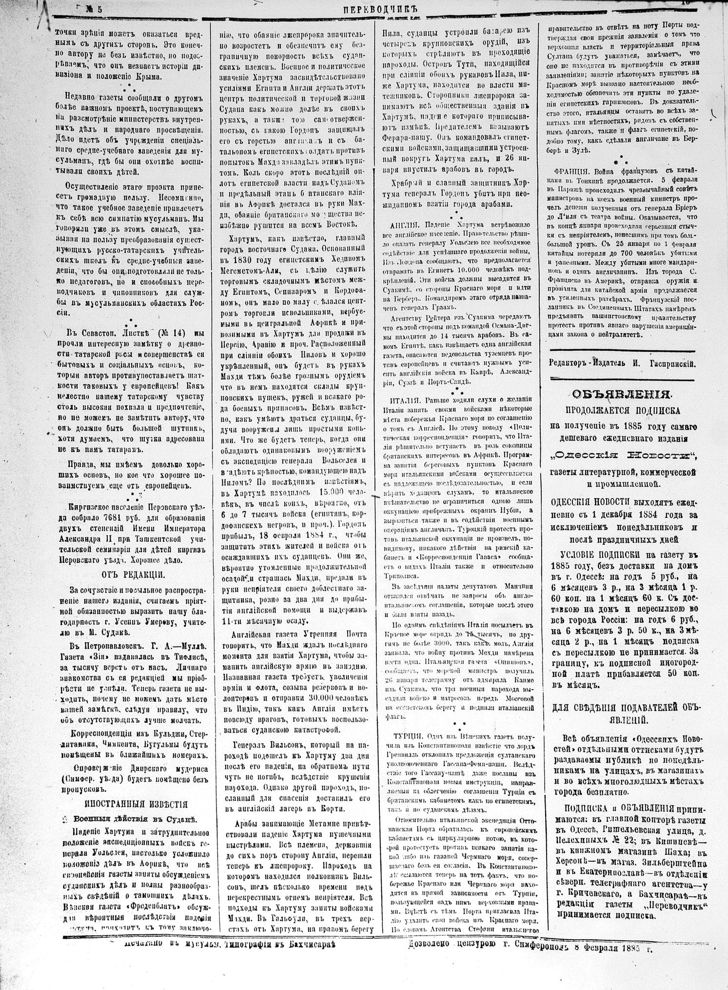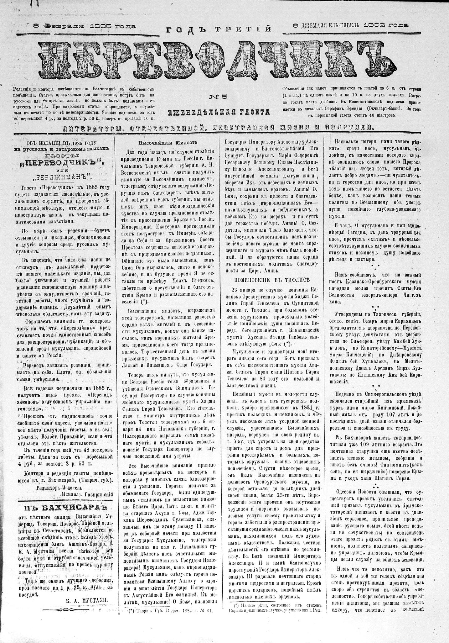 Tercüman, 08 February 1885 Year 3 No 5