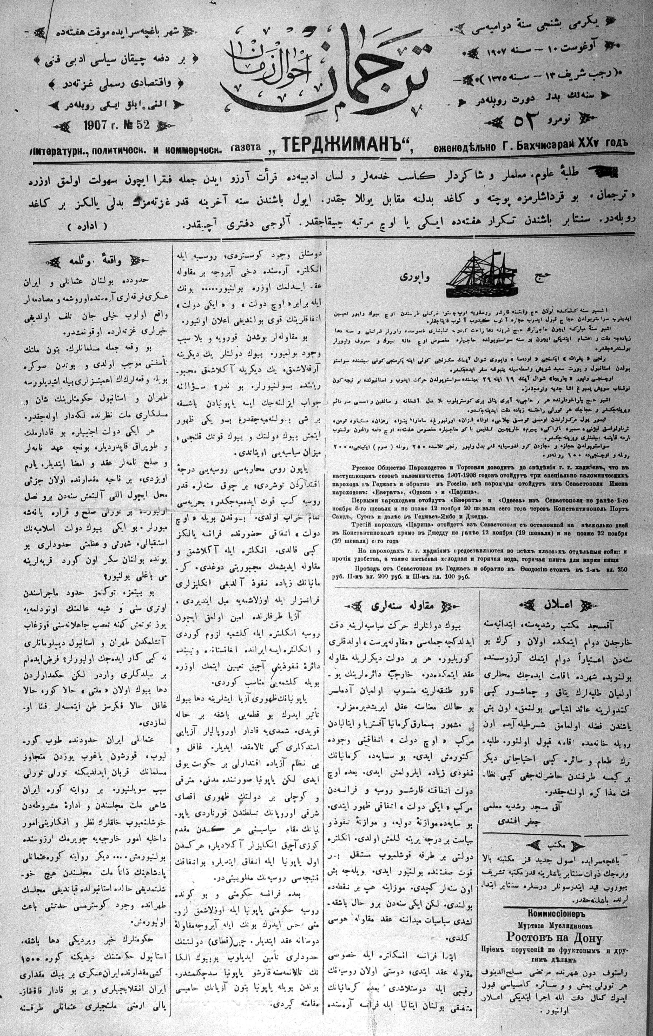 Tercüman, 10 August 1907 Year 25 No 52