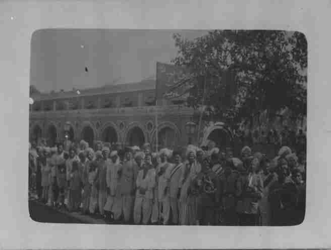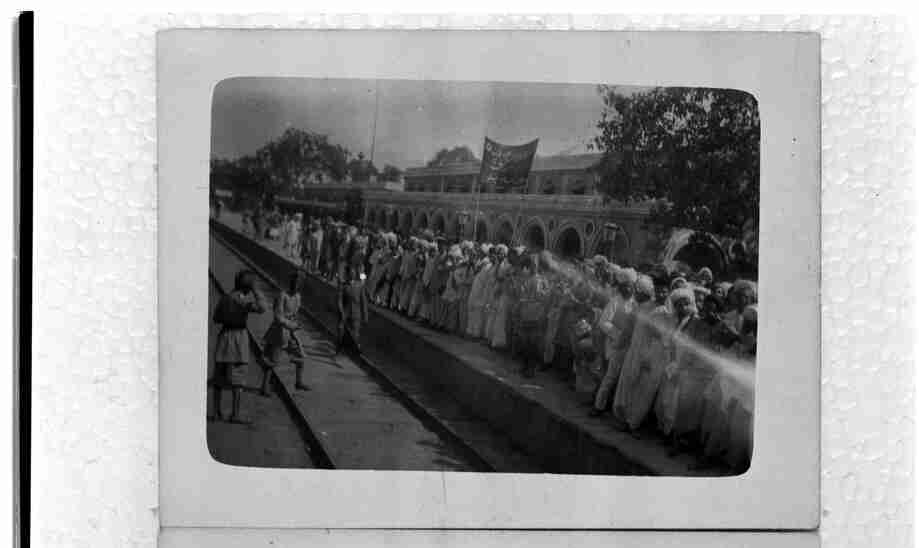 Lahor'da Afganistan Emiri Amanullah Han'ın cülusunu tebliğ için Avrupa hükümetleri nezdinde gönderilen murahhas Muhammed Veli Han'ın istasyon önünde karşılanması töreninden görüntüler.