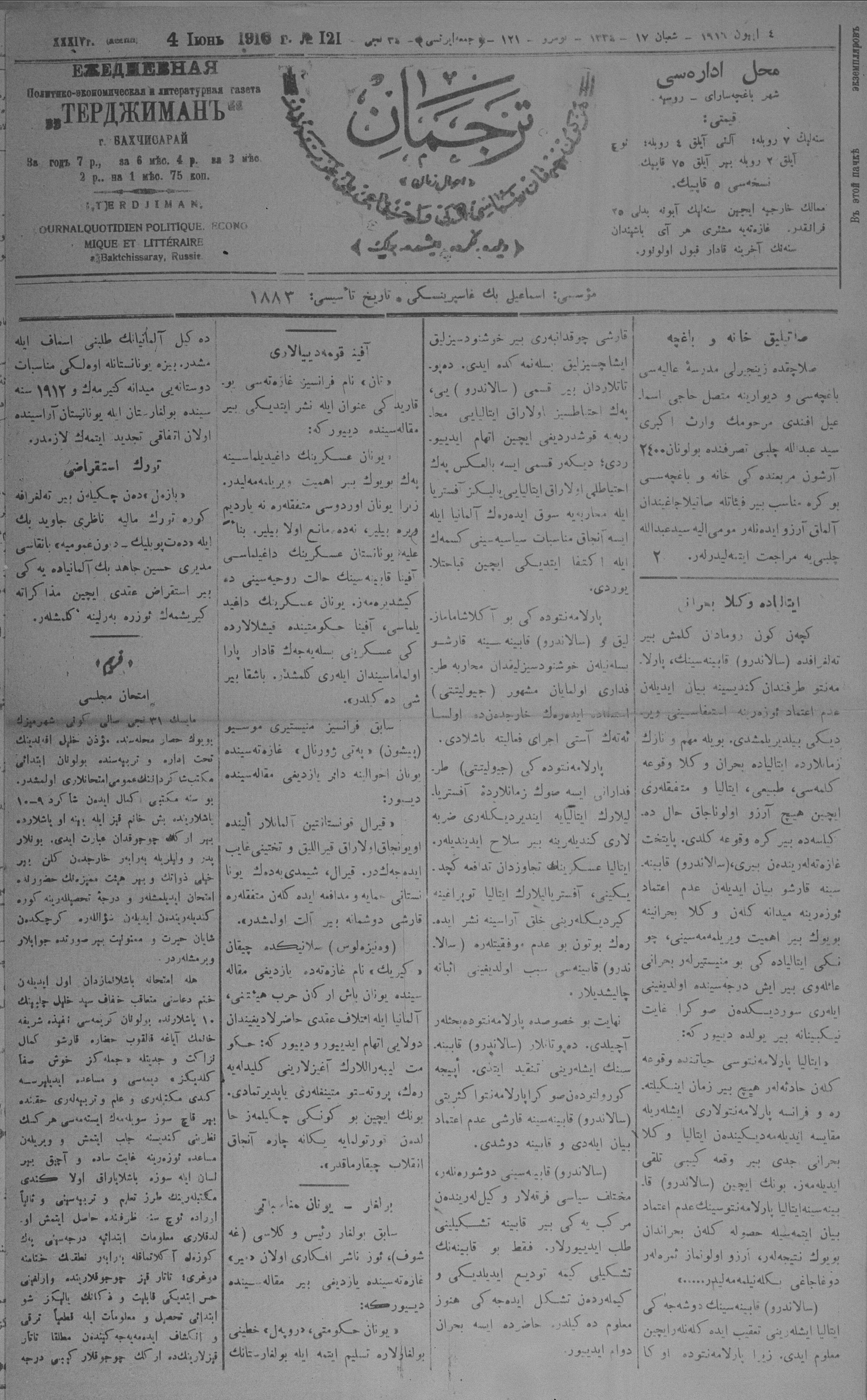 Turkish-Russian newspaper published in Crimea by İsmail Gaspıralı.