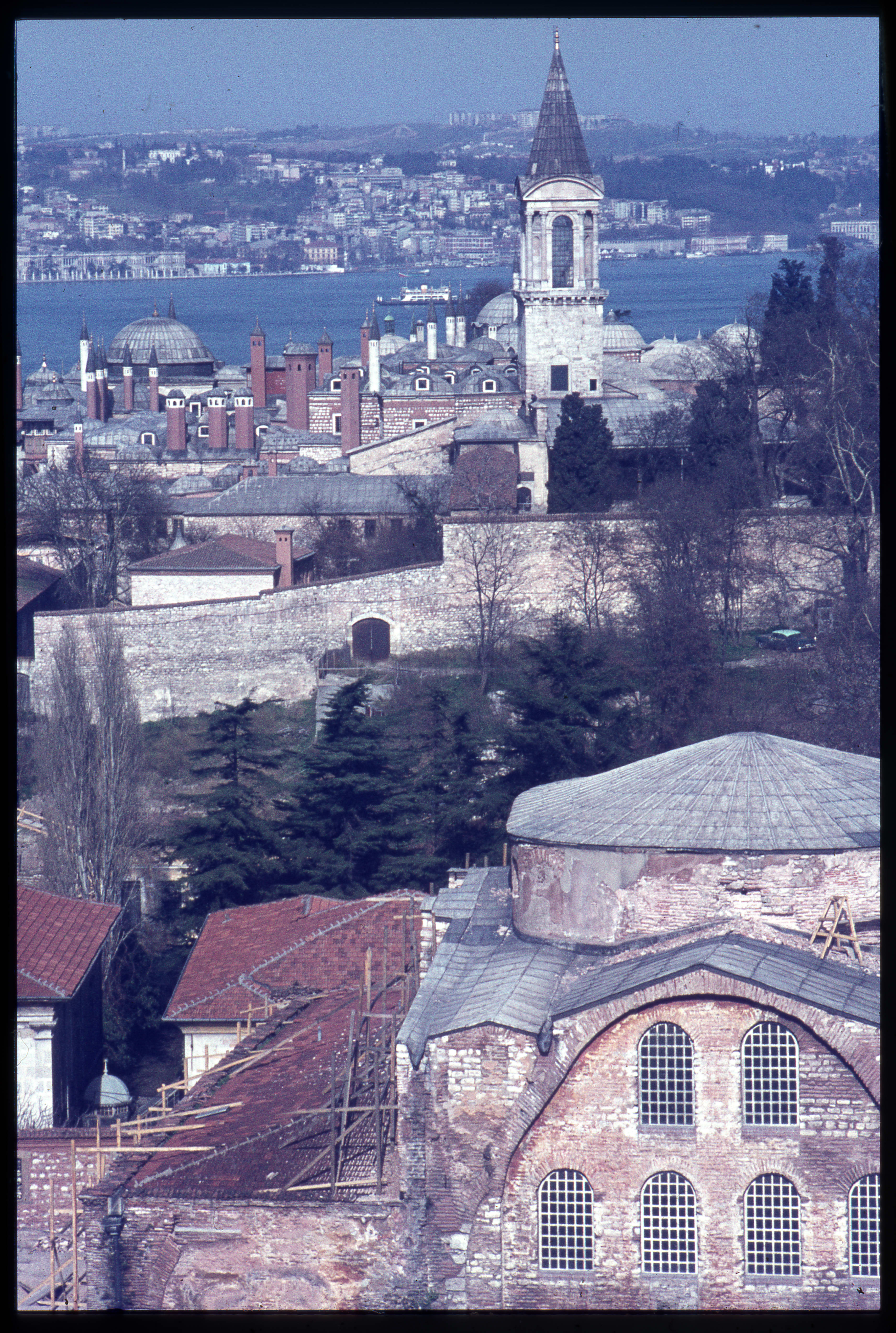 İstanbul-Ayasofya Camii'nin kubbesinden Aya İreni'nin kubbesi ve Topkapı Sarayı