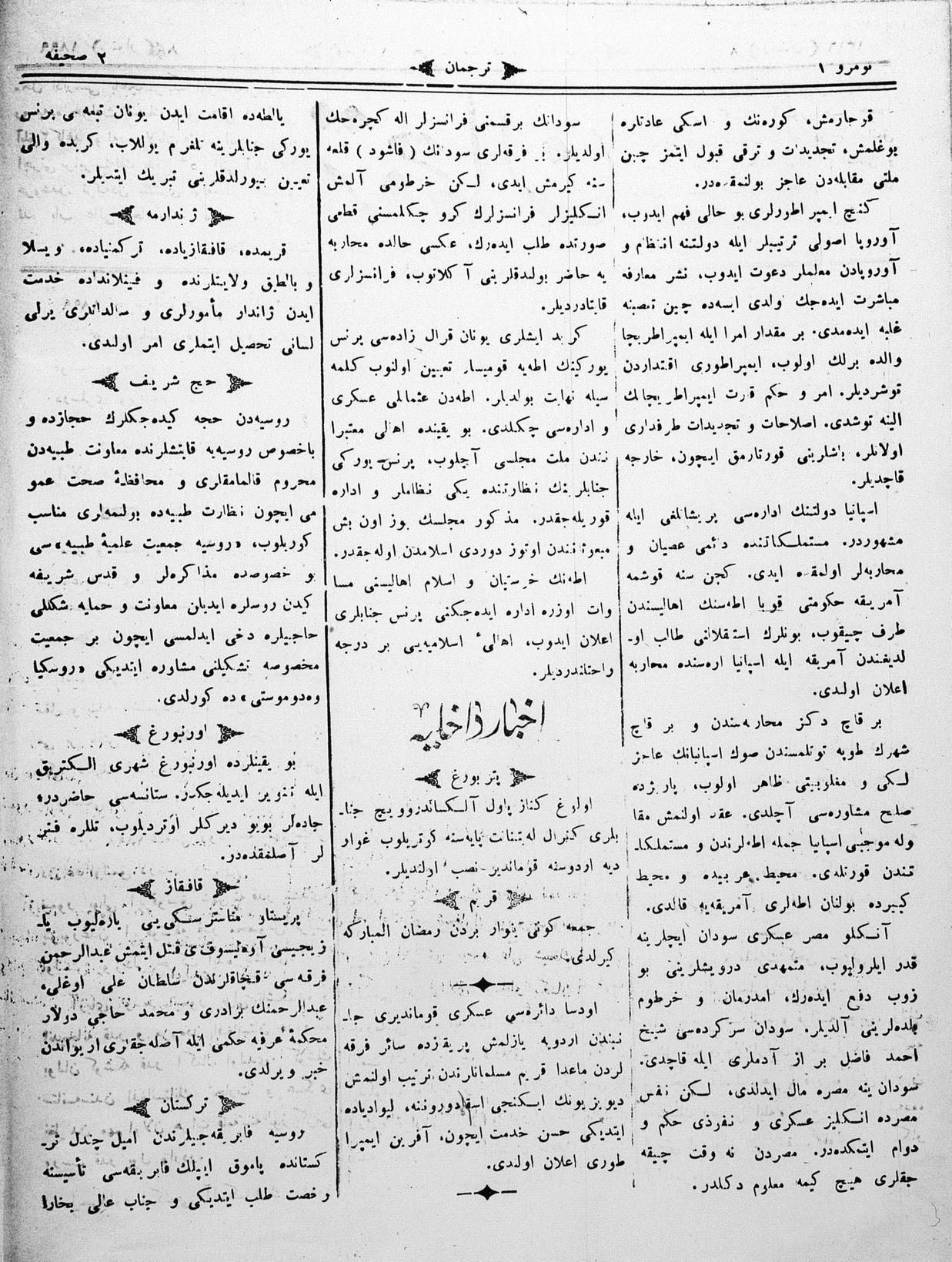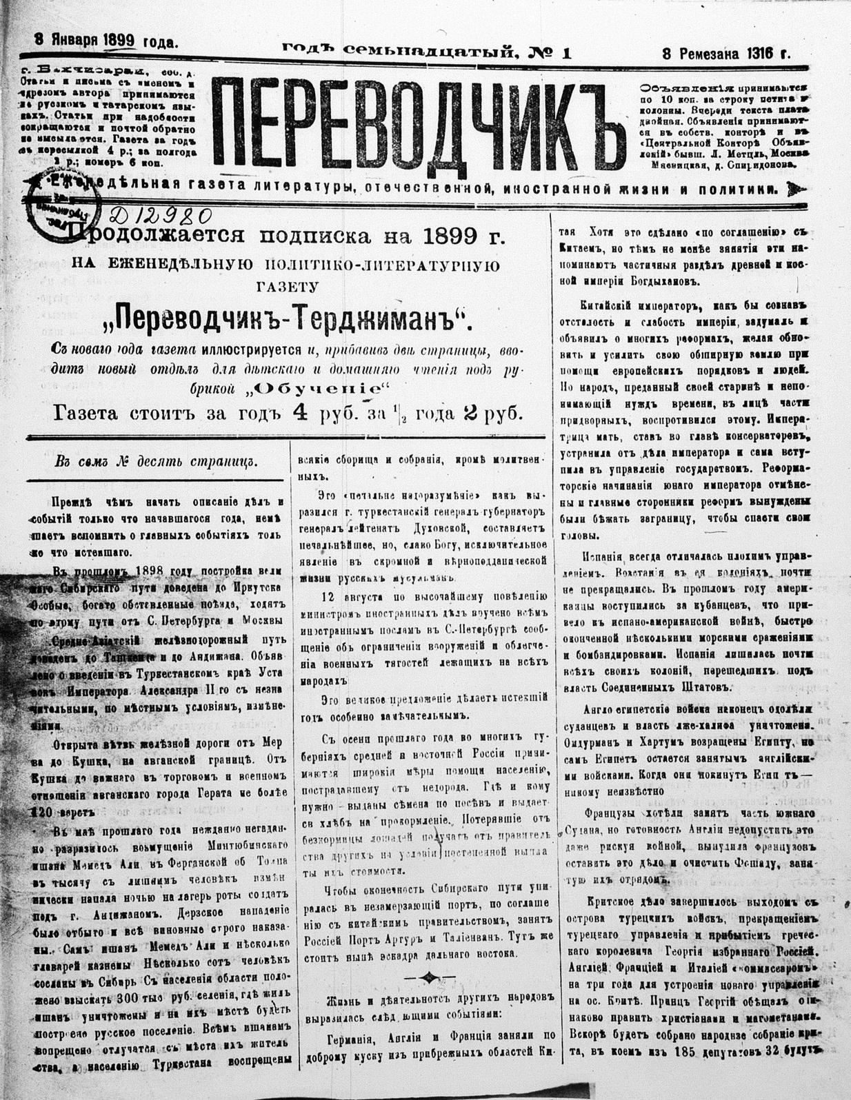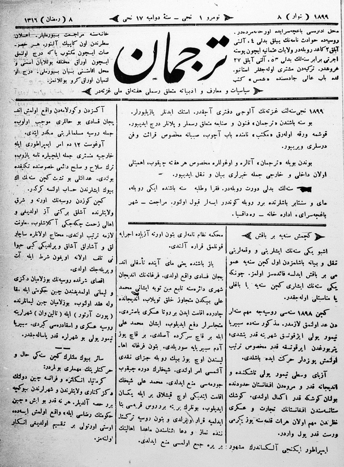 Turkish-Russian newspaper published in Crimea by İsmail Gaspıralı.