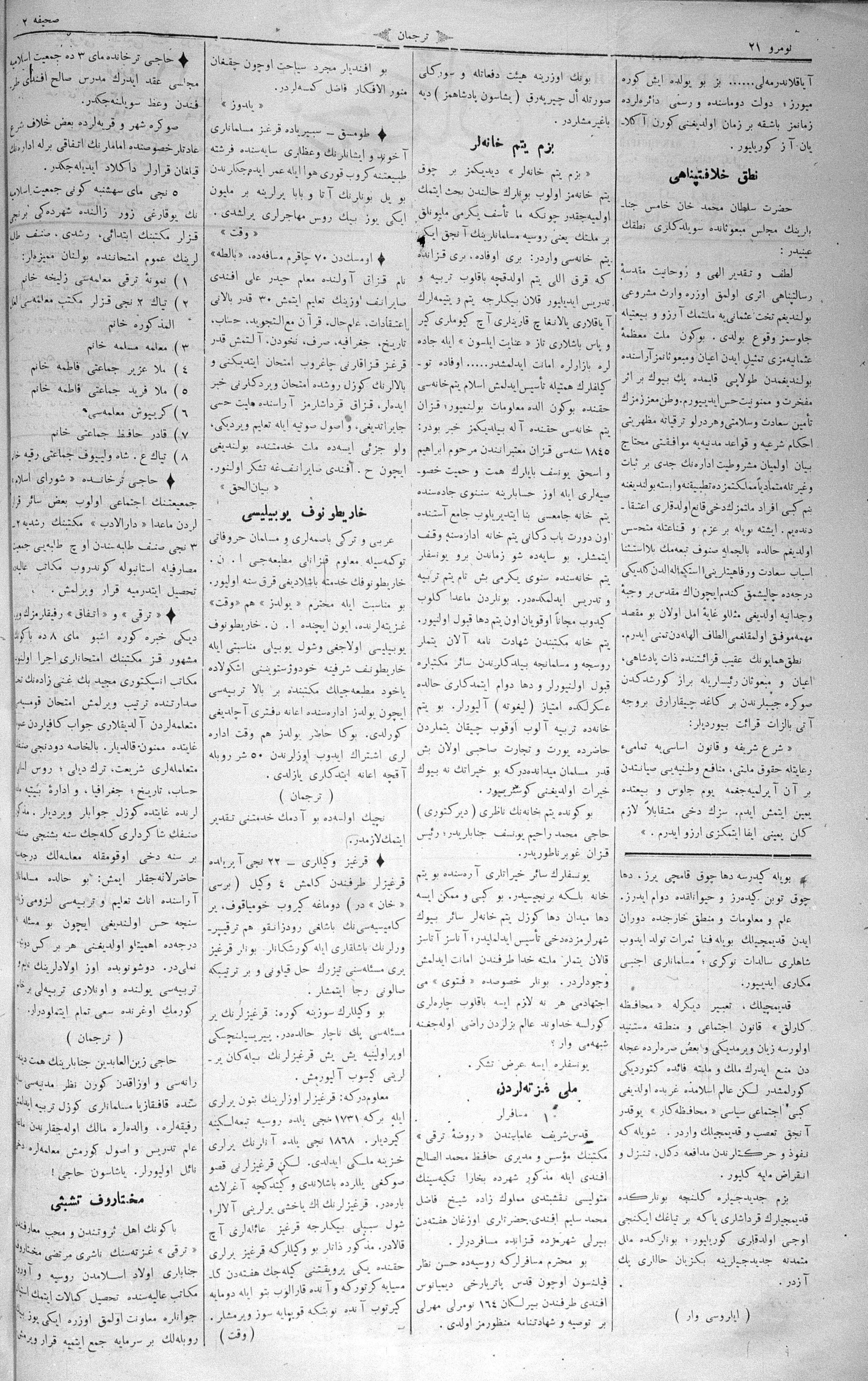 Turkish-Russian newspaper published in Crimea by İsmail Gaspıralı.