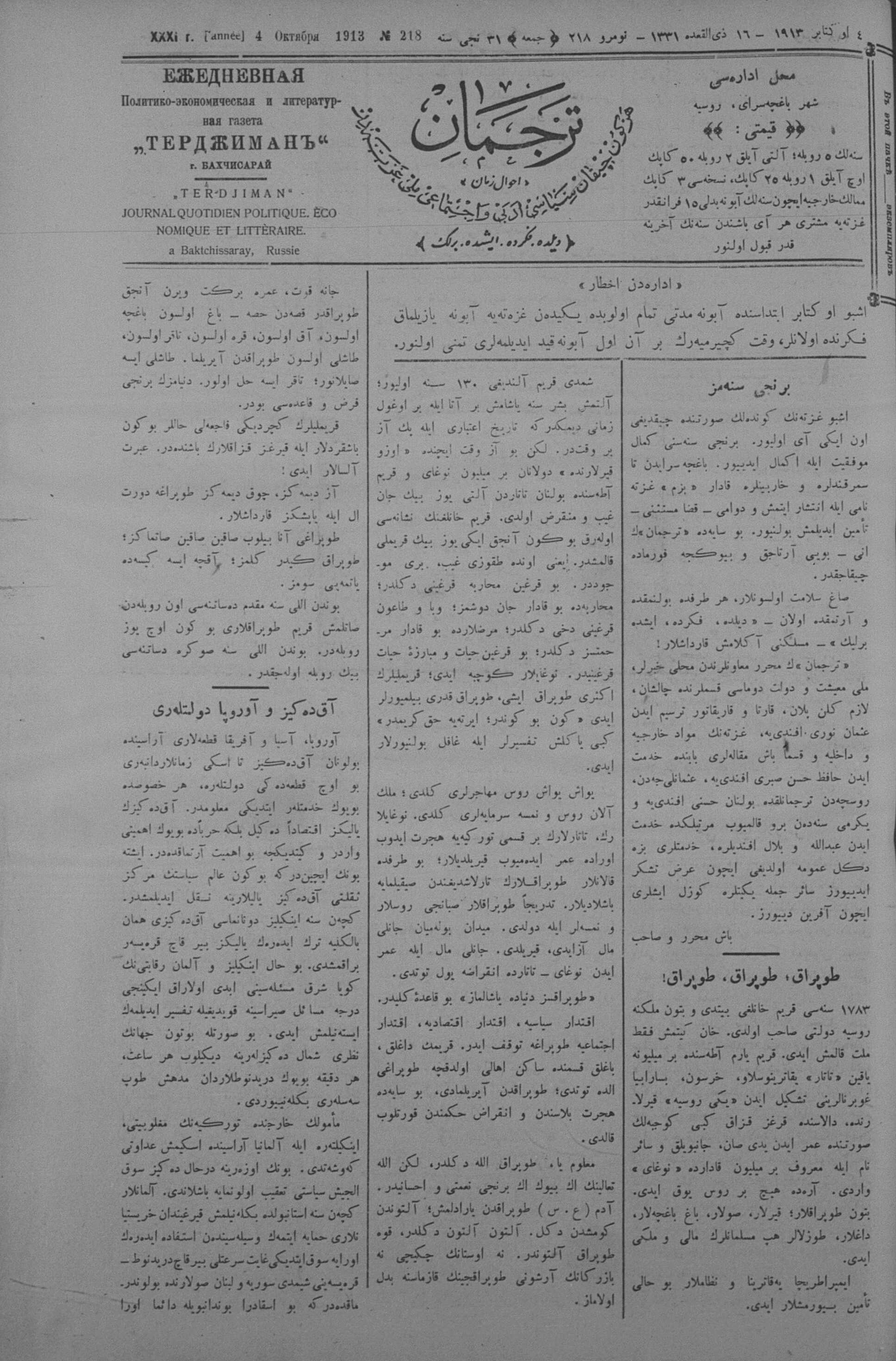 Tercüman, 04 October 1913 Year 31 No 218