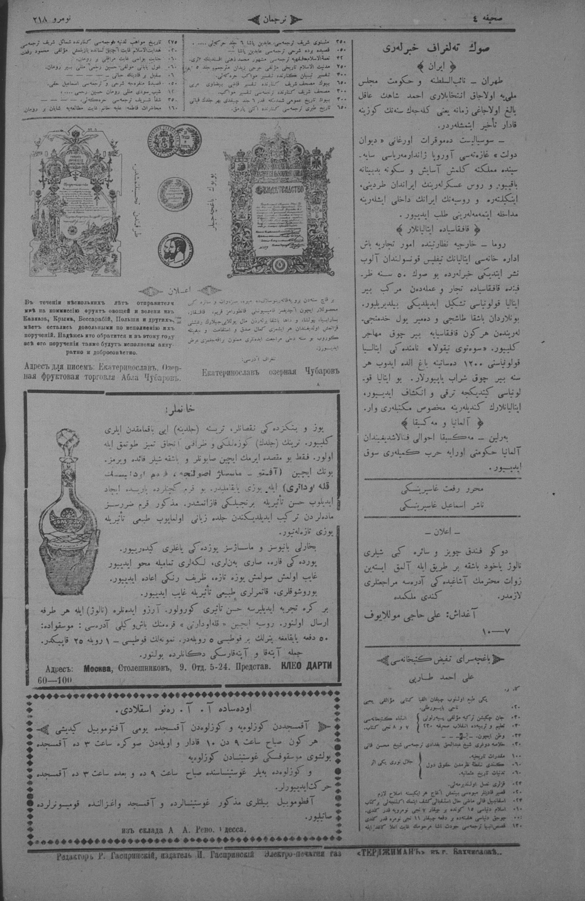 Turkish-Russian newspaper published in Crimea by İsmail Gaspıralı.