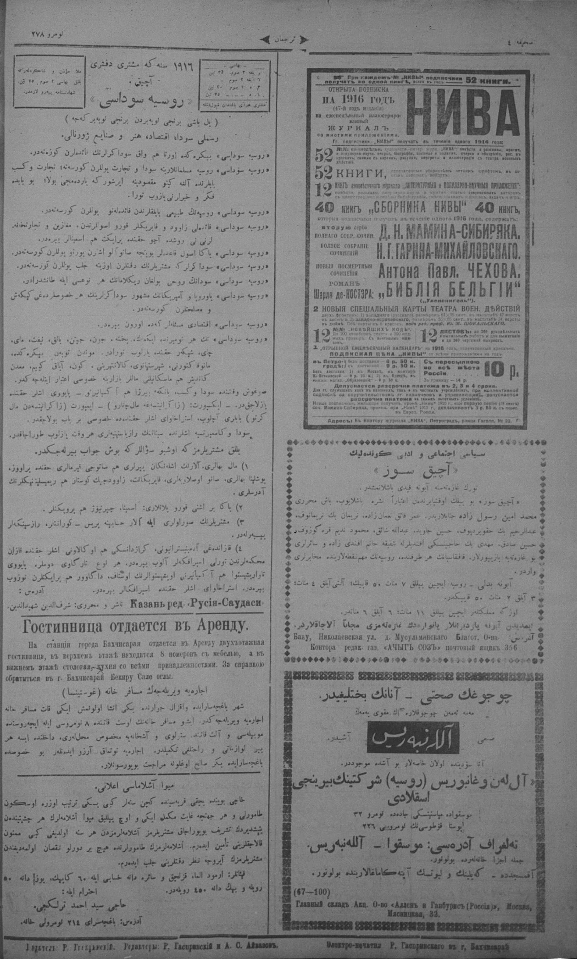 Turkish-Russian newspaper published in Crimea by İsmail Gaspıralı.