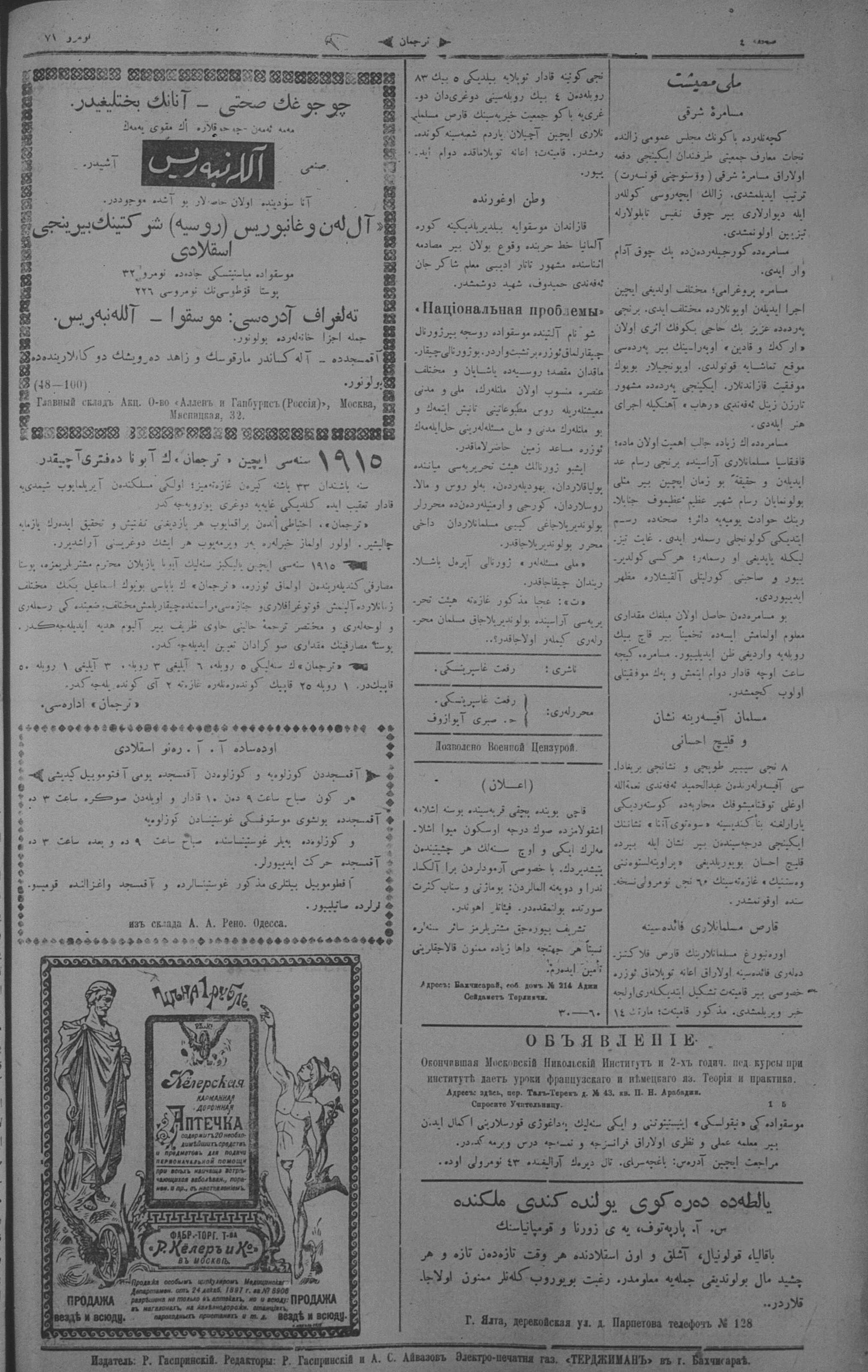 Tercüman, 31 March 1915 Year 33 No 71