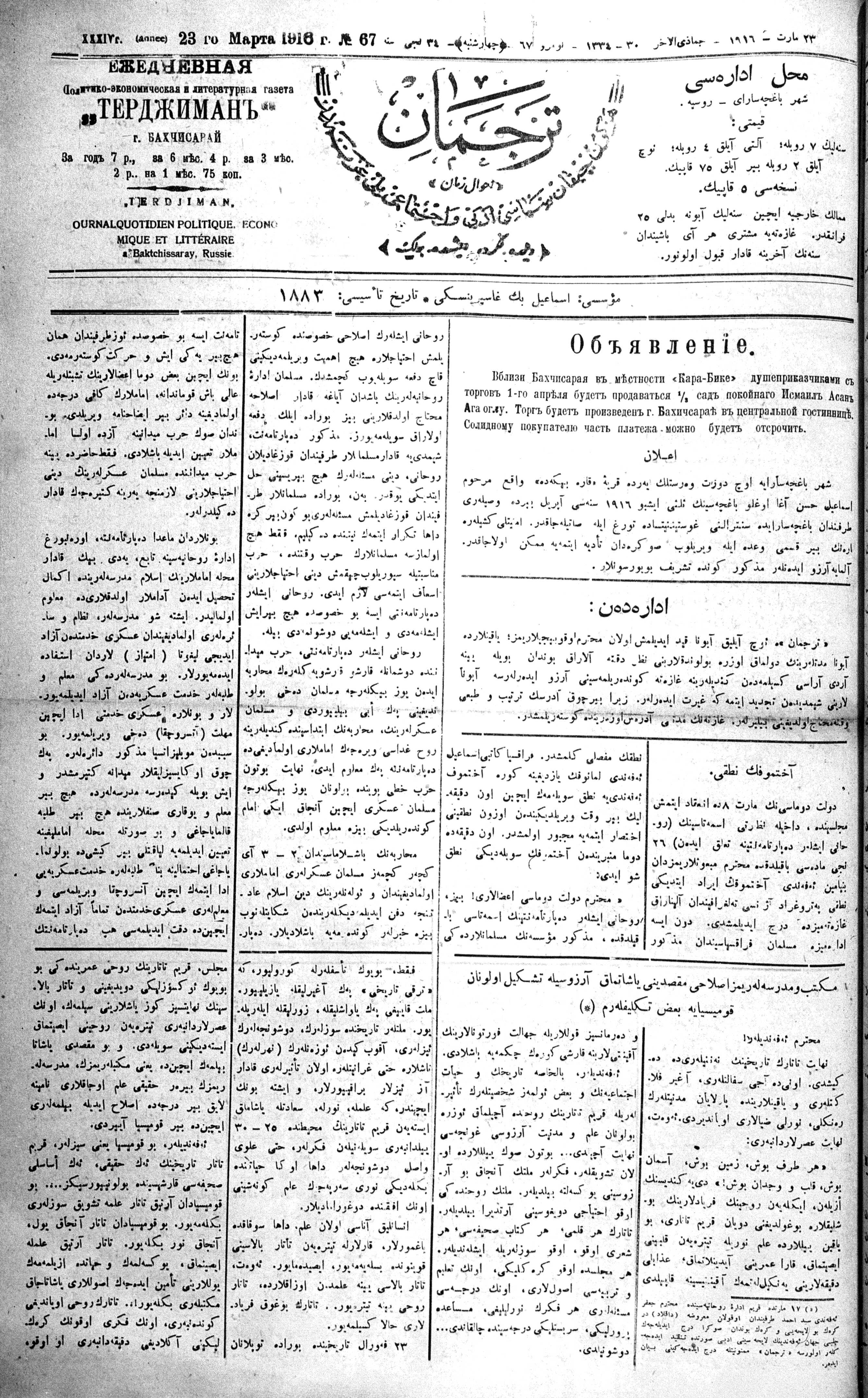 Turkish-Russian newspaper published in Crimea by İsmail Gaspıralı.